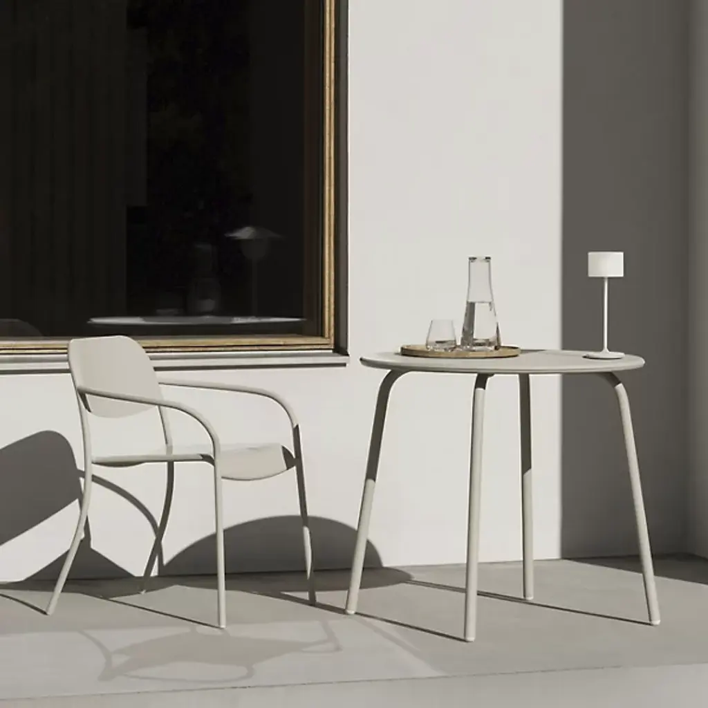 The YUA Outdoor Round Bistro Table from Blomus helps create an inviting outdoor gathering space. YUA furniture features gracefully curved flat surfaces around structural tubes, blending functionality with elegant design. Named after the Japanese word for "connectedness," this table enhances your outdoor decor beautifully. Made from galvanized and powder-coated steel with a high-end weatherproof coating, it ensures durability. Designed by Florian Kallus and Sebastian Schneider of Kaschkasch Design Studio in Cologne, this table is built to last.