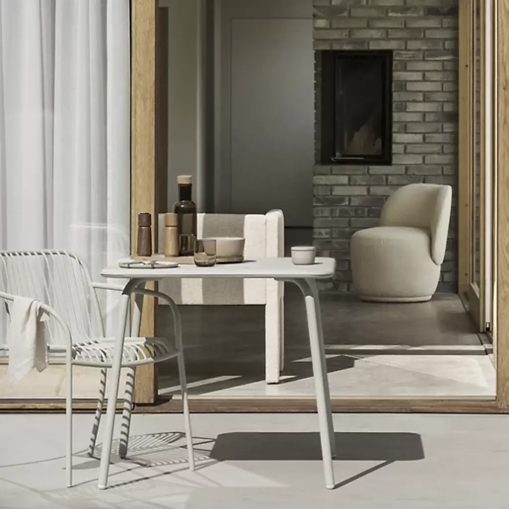 The YUA Outdoor Square Bistro Table from Blomus transforms your outdoor area into an inviting gathering space. Featuring gracefully curved flat surfaces around sturdy structural tubes, YUA furniture seamlessly blends functionality with elegant design. Named after the Japanese word for "connectedness," this table beautifully enhances any outdoor decor. Crafted from galvanized and powder-coated steel with a high-end weatherproof coating, it ensures long-lasting durability. Designed by Florian Kallus and Sebastian Schneider of Kaschkasch Design Studio in Cologne, this table is built to withstand the elements and provide timeless style.