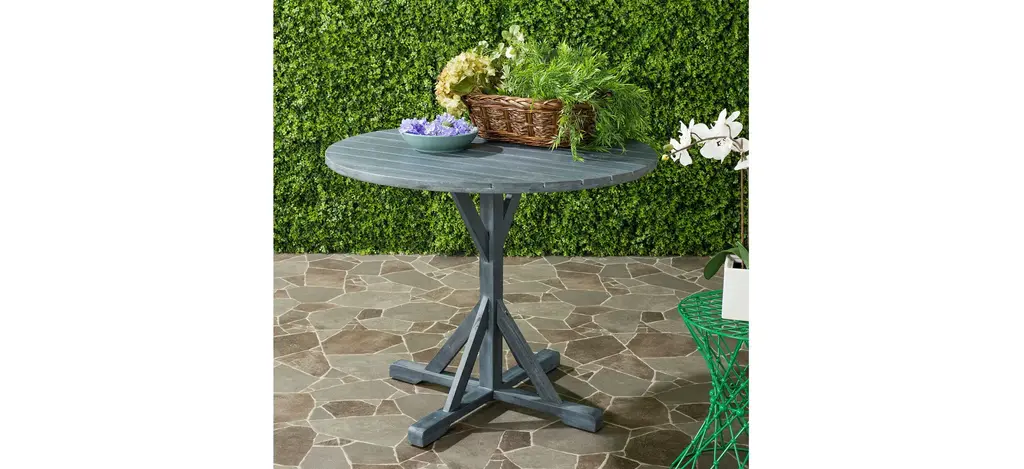 Inspired by the luxurious contemporary style at a resort in the Maldives, the Zen round table turns any outdoor gathering into a chic soiree. Crafted with natural acacia wood and brass metal details, it's a contemporary classic for outdoor living.