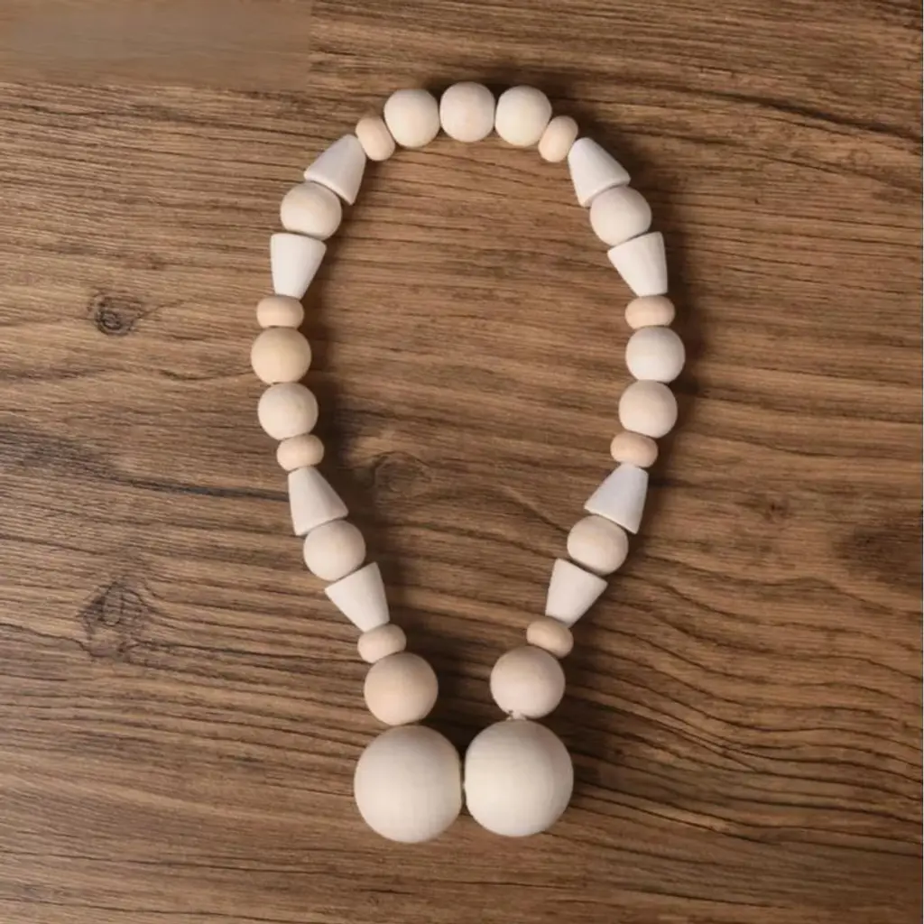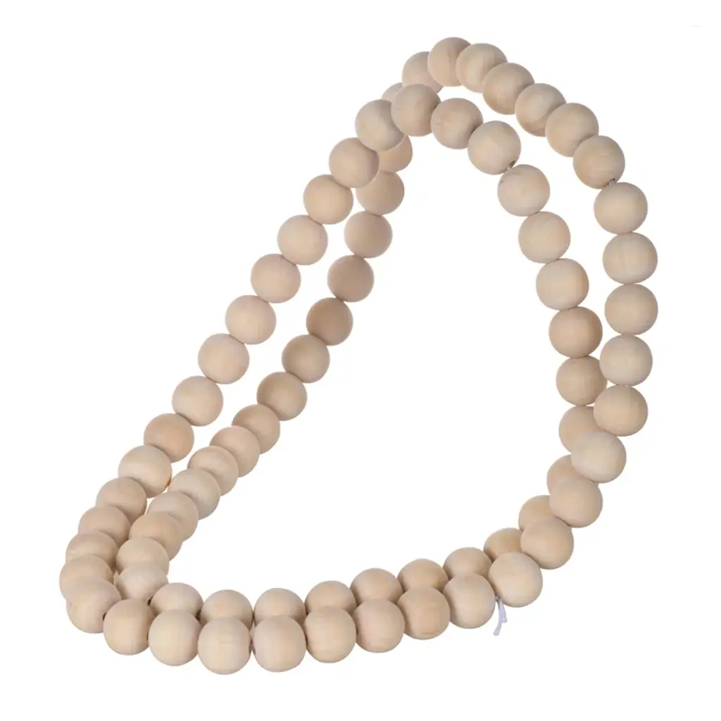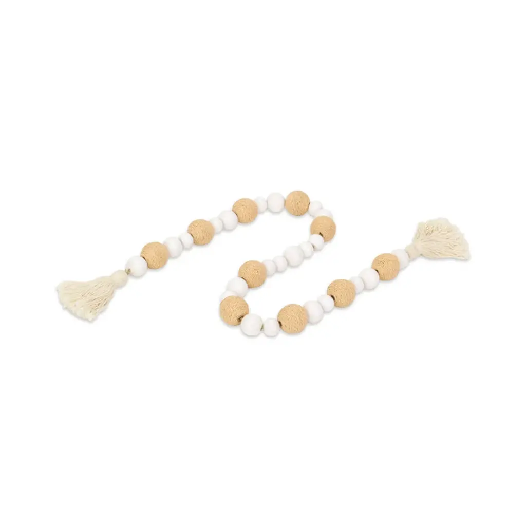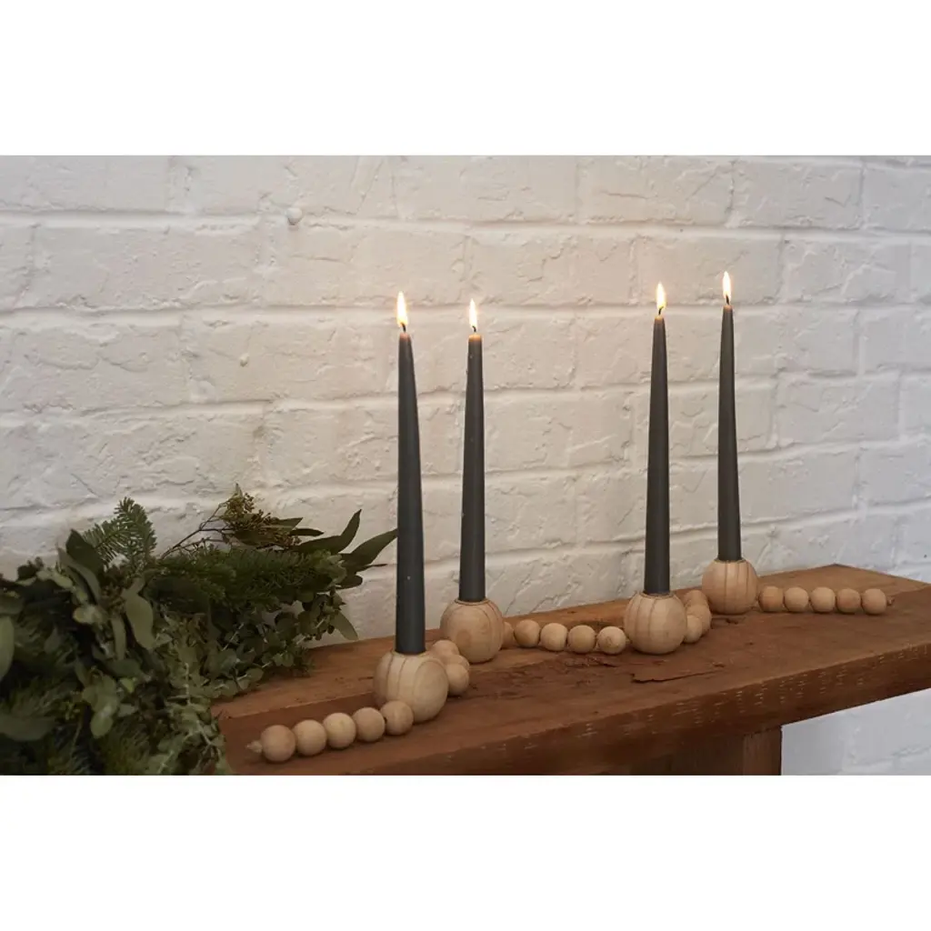 This decorative candle holder brings boho style and a laid-back aesthetic to any surface. It's handmade from wood with a natural beige finish, and it features a bunch of round beads on a piece of string. Four larger beads spread along the strand double as candle holders, accommodating real or artificial taper candles. We love how this decor piece looks as a dining table centerpiece or as an eye-catching accent on your fireplace mantle.