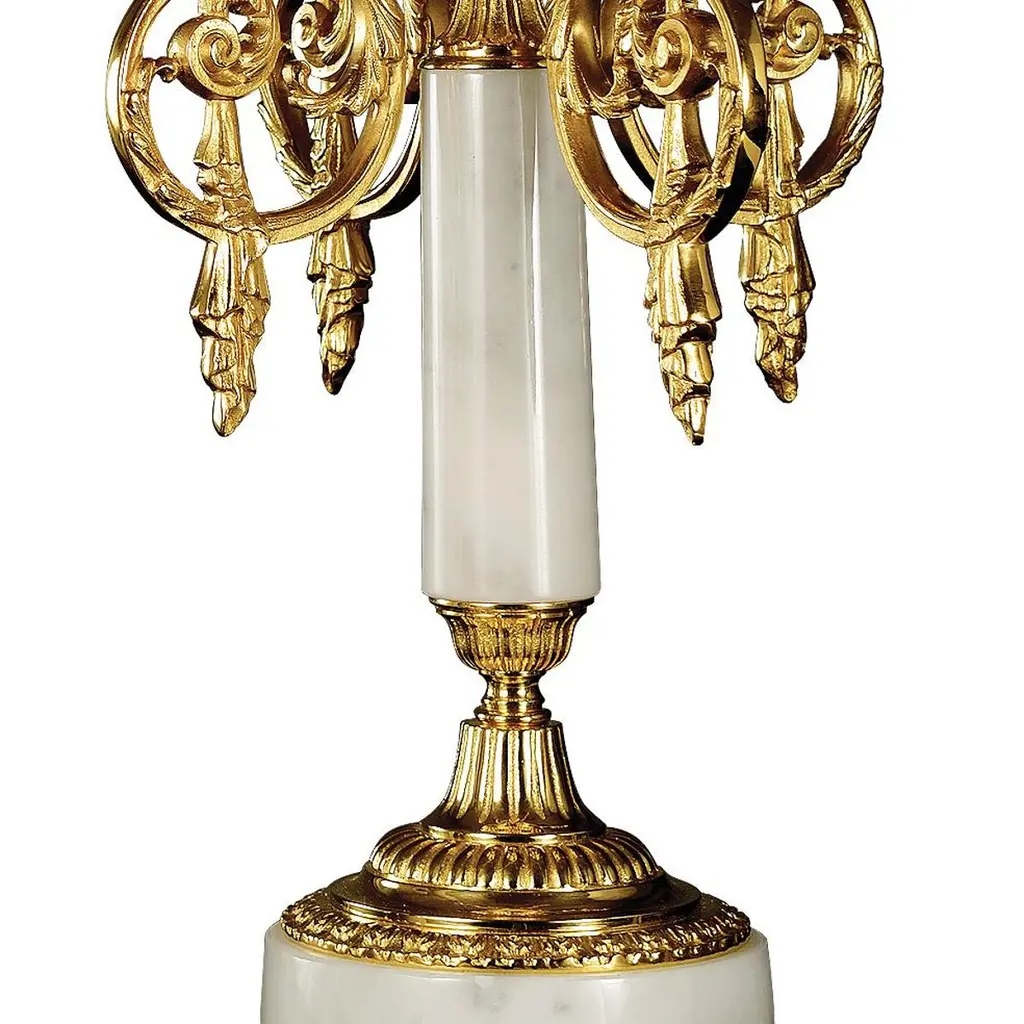 21st Century, White Veined Marble And Golden Bronze Candelabra