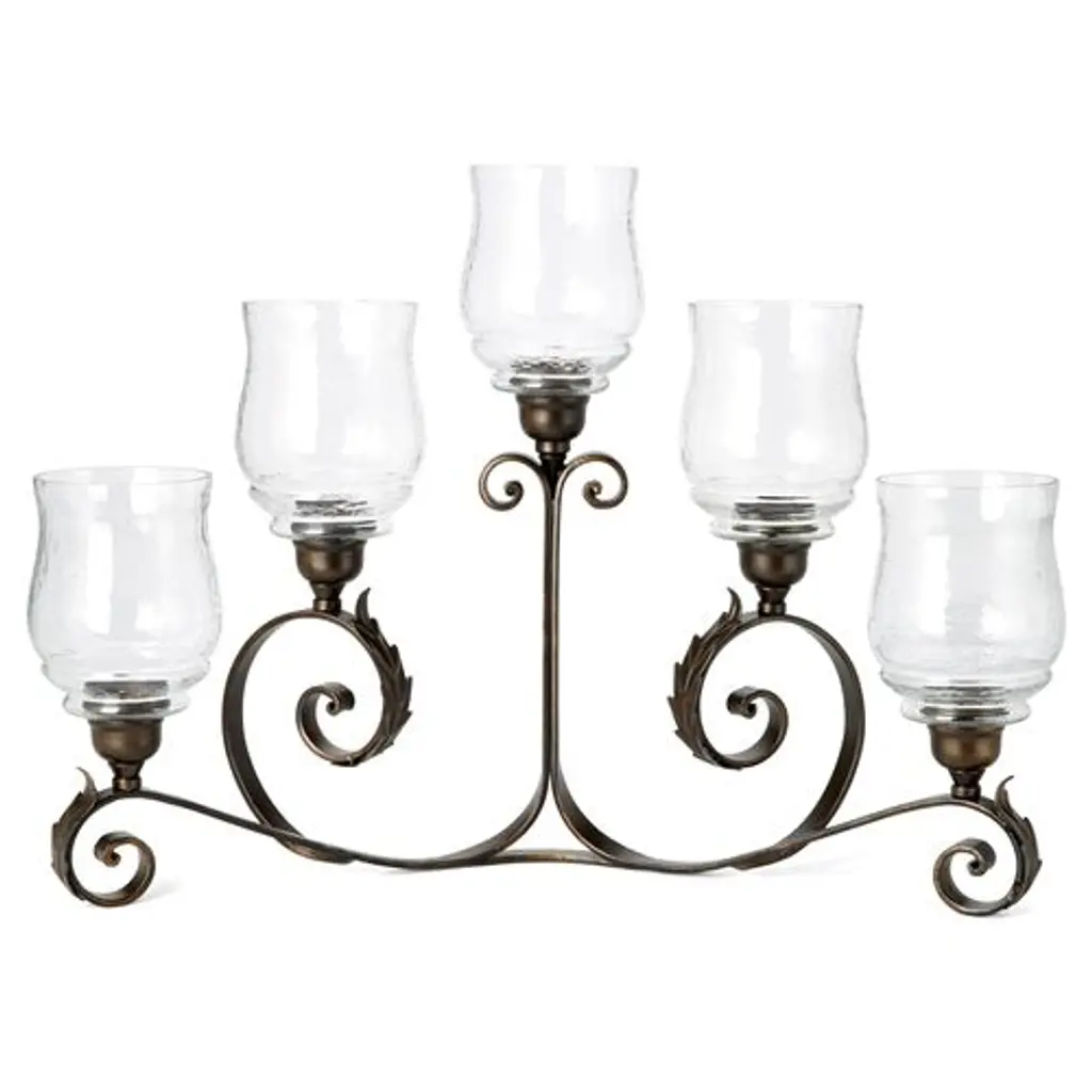 A striking statement when lit with candles, this five-light holder also shines when woven with vines and blooms.