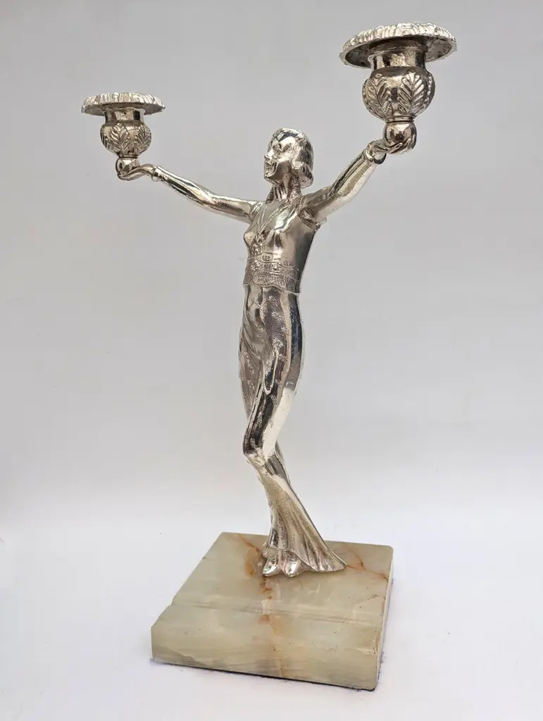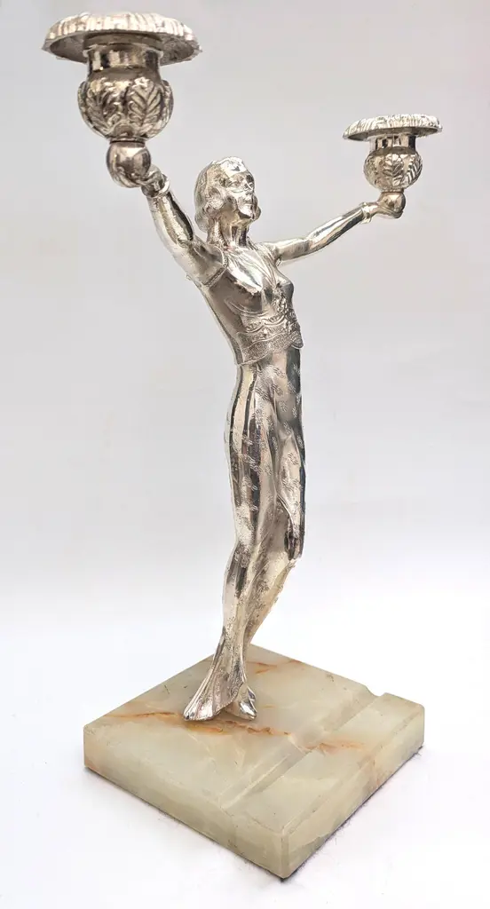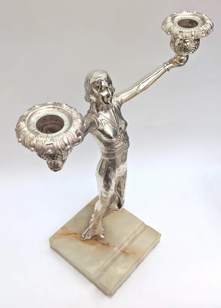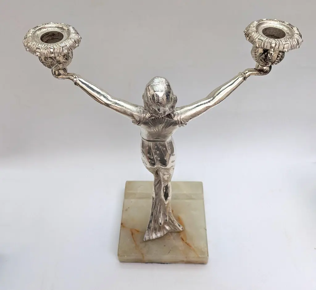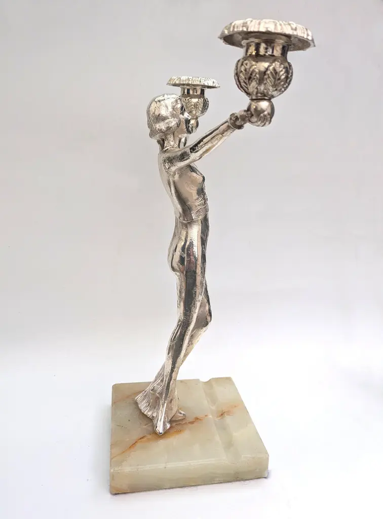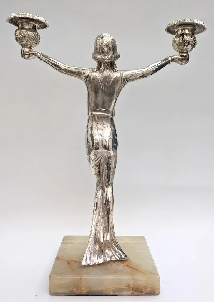 Art Deco Female 'Hollywood' Girl Candelabra In Spelter, C1930