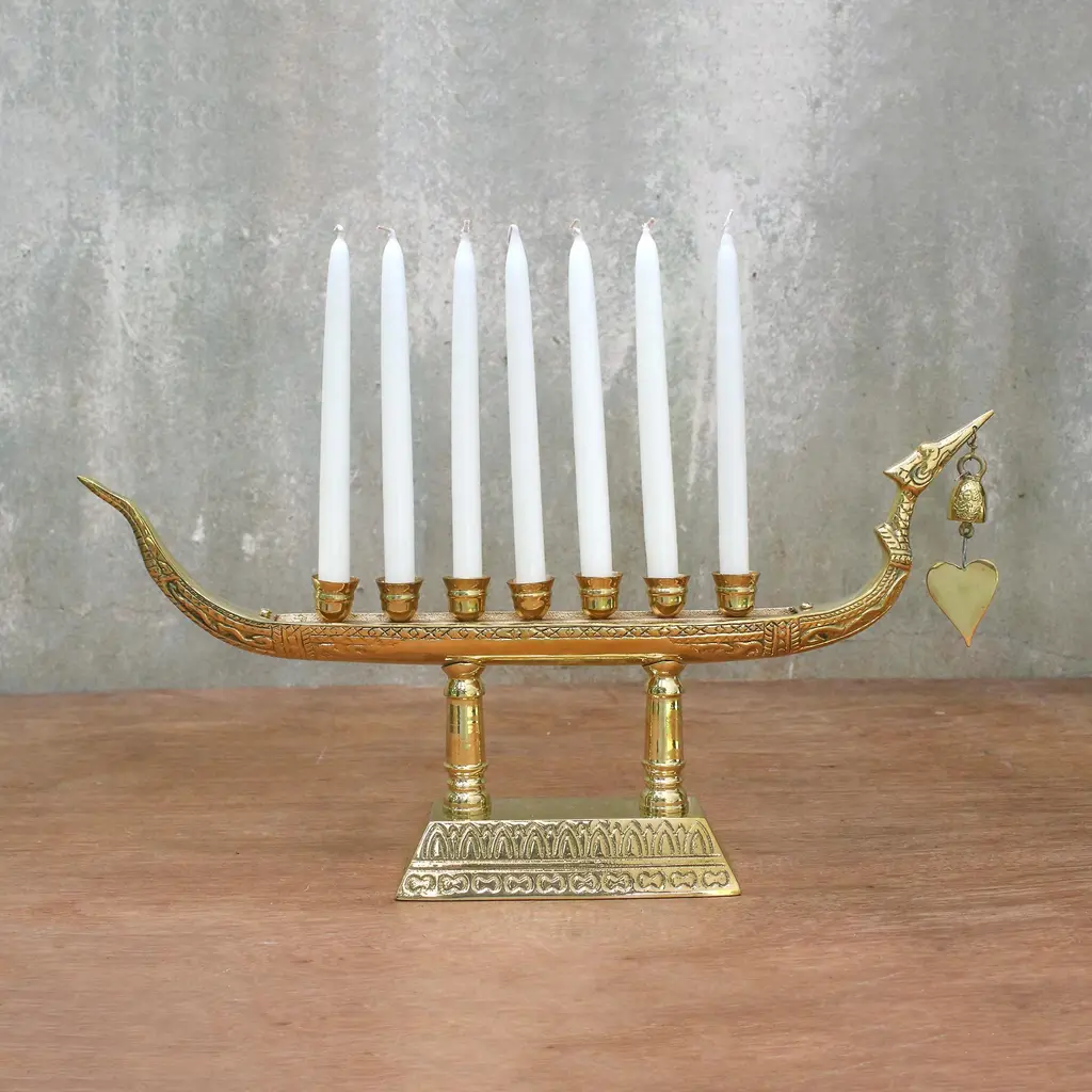 Celebrate the Festival of Lights with this elegant menorah in the iconic Berry & Thread pattern. Featuring a beautifully sculpted pedestal embellished with subtle detailing and scalloped flourishes, you may just want to keep this pretty piece on your mantel year-round. The Portuguese stoneware ceramics echo the same artisanal production as Juliska glassware. Juliska has developed a variety of exquisite transparent, opaque, and metallic glazes on a tough Portuguese stoneware body. All are lead-free and each has the same tough durability to handle the most demanding everyday use.