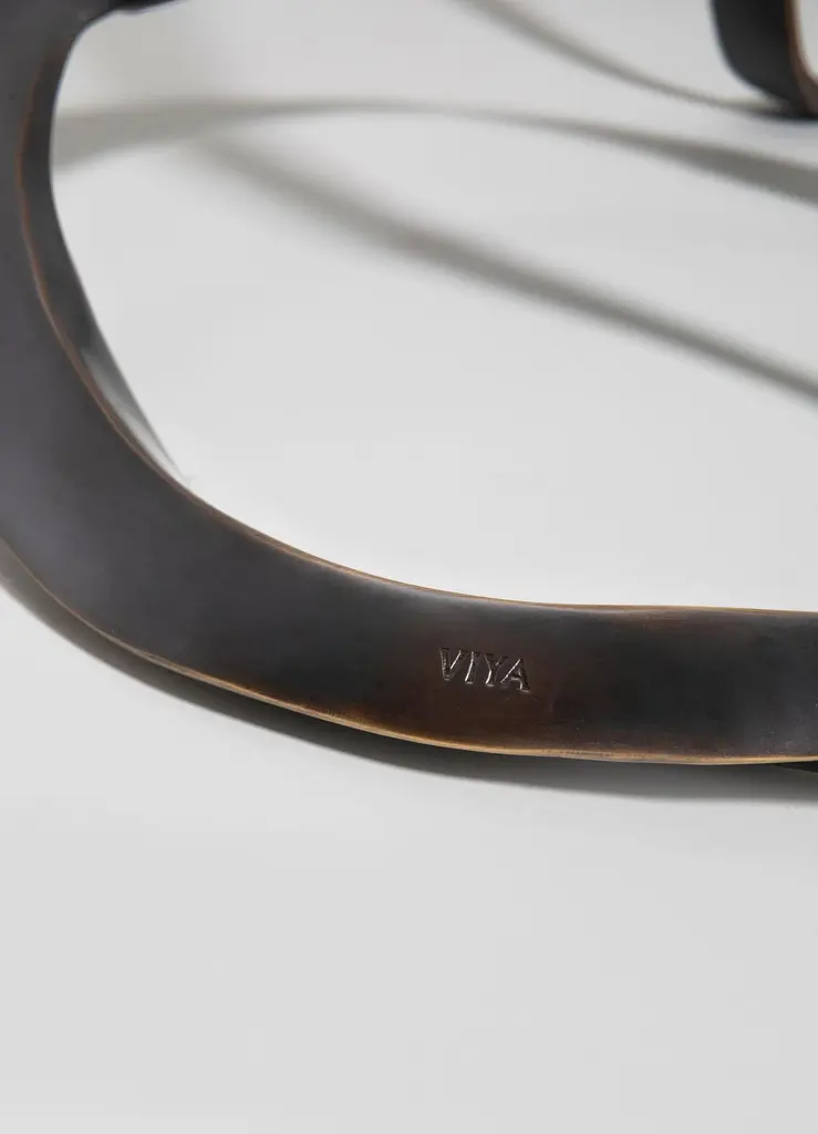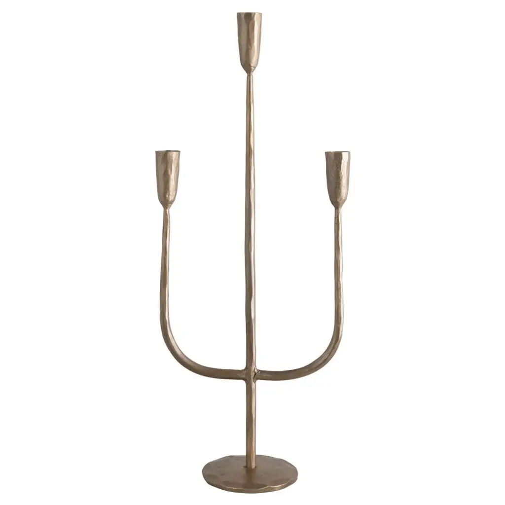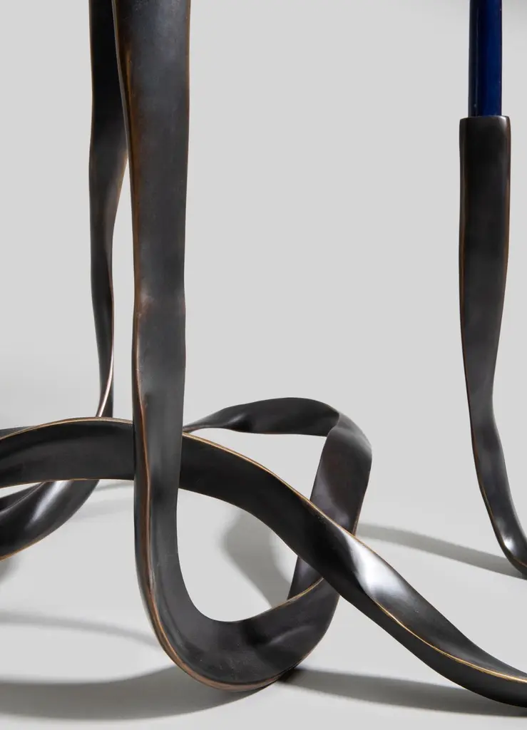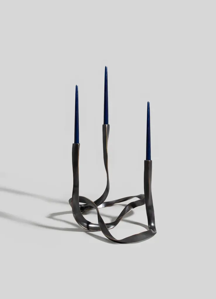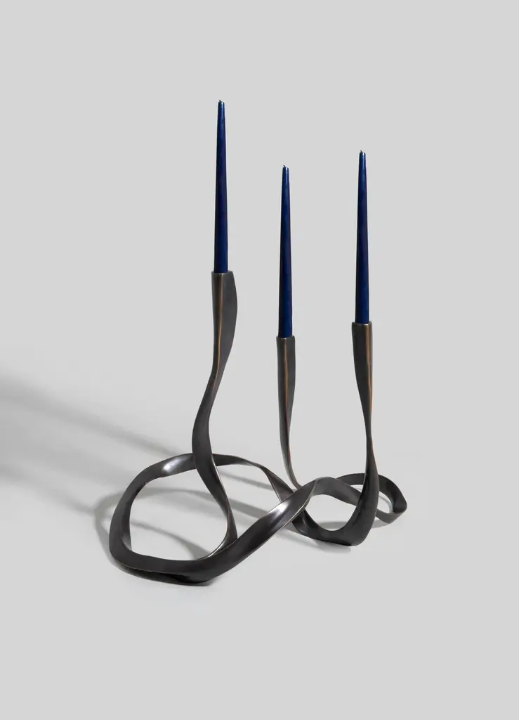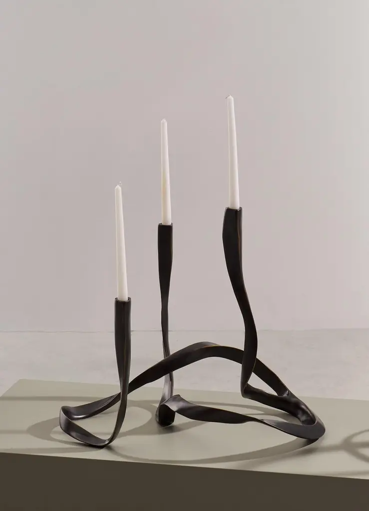 Blackbuck Candelabra in Brass, Viya by Vikram GoyalThe Blackbuck is an animal revered across cultures, and in India symbolic of purity and the divine. Our collection of cast brass objects manifest some of these traits; the dark graceful twisting forms, inspired by its antlers, rise skyward. Through their form, they capture the delicate balance of earthly virtue and celestial yearning.Candle stand in brass. Handmade in India.Product DetailsMaterial: BrassSize: 22"L x 18"W x 18.5"H 55.9 L x 45.7 W x 47 H cmWeight: 7.8 kg 17.16 lbsNumber of Pieces: 1 Candle StandSKU: VCS154This product has been handcrafted by local artisans. As such, slight variations are a testament to the unique character of a piece made by hand.