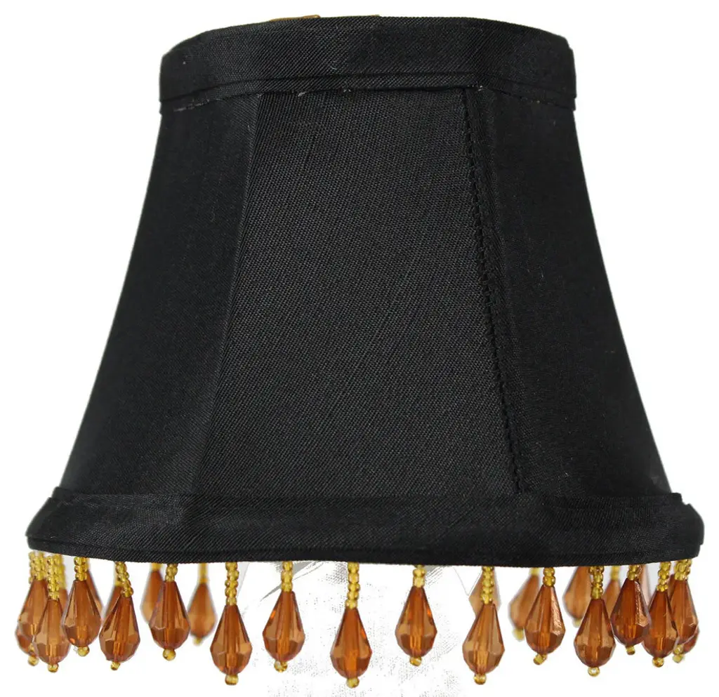 Candelabra Stretch With Gold Liner, Amber Beads Premium Lampshade 3"x5"x4"