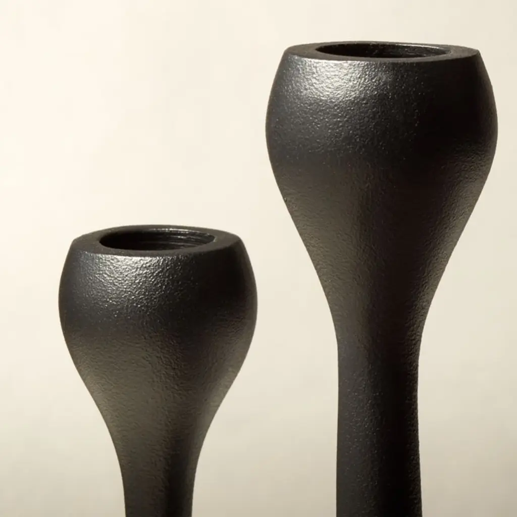 Matte black multi taper candle holder takes the term "sculptural" to new heights. Unique shape supports five taper candles for a glow with artistic edge. CB2 exclusive.