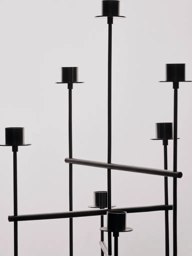 The Elysia Candelabra brings a light, airy expression to spaces with its slender stainless steel frame and soft, matte finish. The delicate structure draws the eye, giving the impression that the candles are floating. With its tall, sculptural form, it adds an atmospheric presence to any setting, balancing elegance with quiet impact. *Please note - this item is expected to be available approximately 11/27/25. We are currently taking pre-orders and item will ship when available.