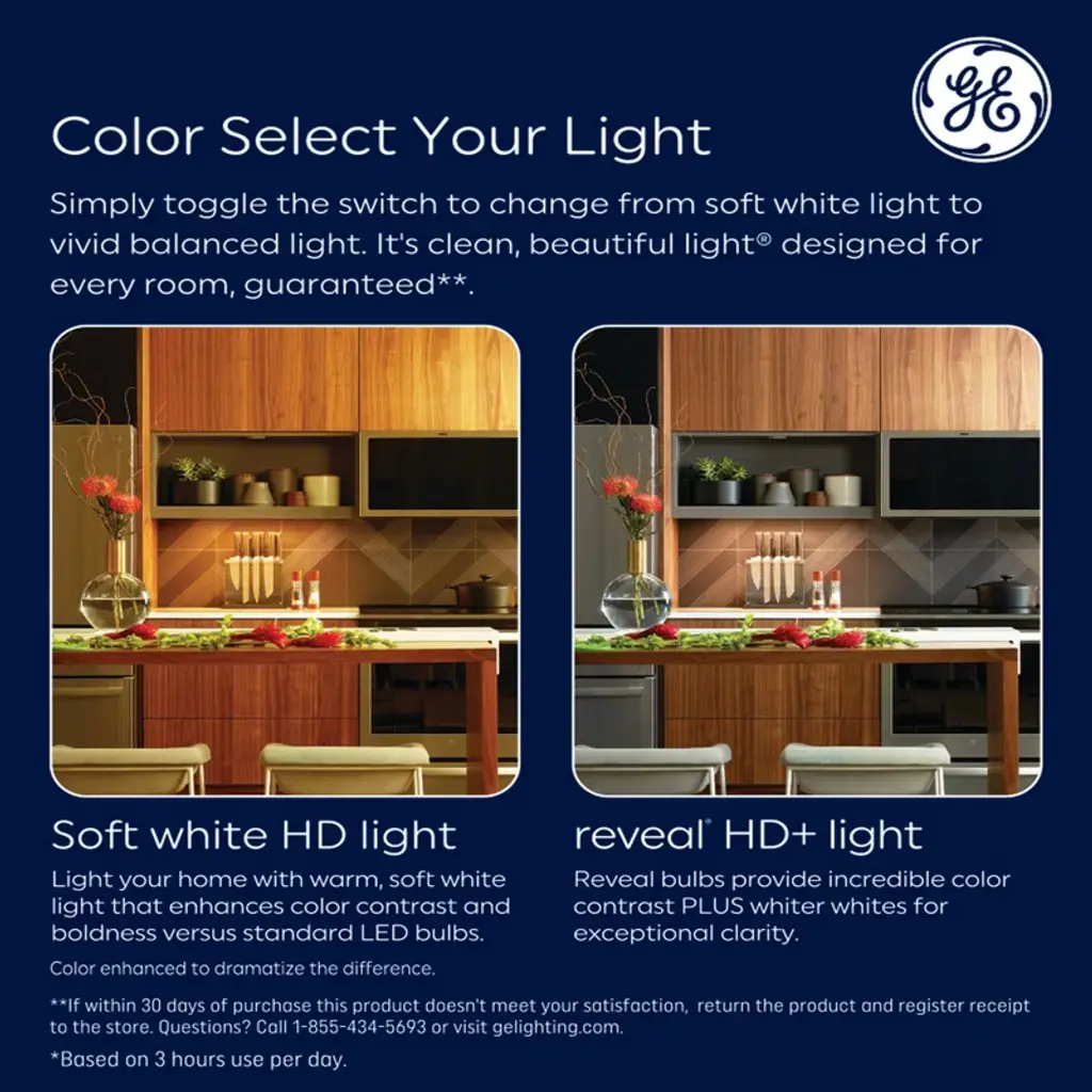 Our LED light bulbs offer outstanding energy efficiency, long-lasting performance and just-right brightness, all in one package. They illuminate your home with Reveal light. Unlike CFL bulbs, our LED bulbs feature instant full brightness and are free of Mercury. It’s great for frequently used fixtures — our LED's long life and low energy use will help you save money on energy.
