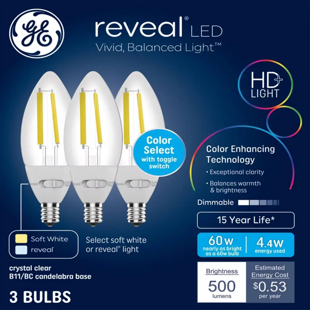 Ge 3Pk 60w Color Select Led Decorative Light Bulbs Clear