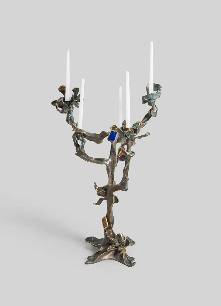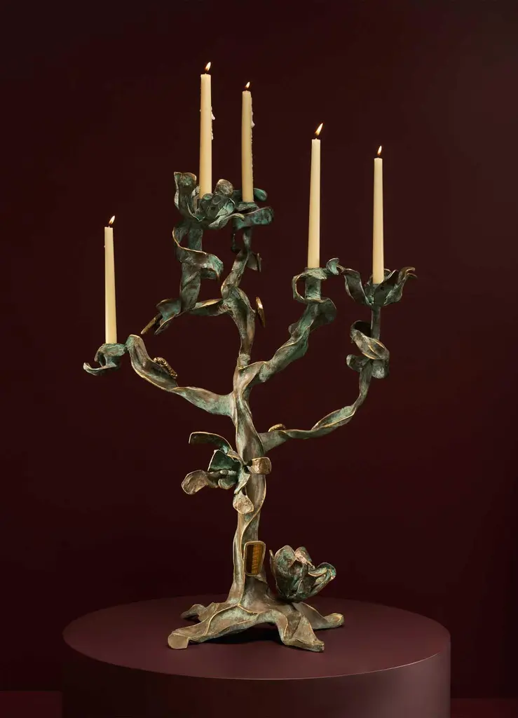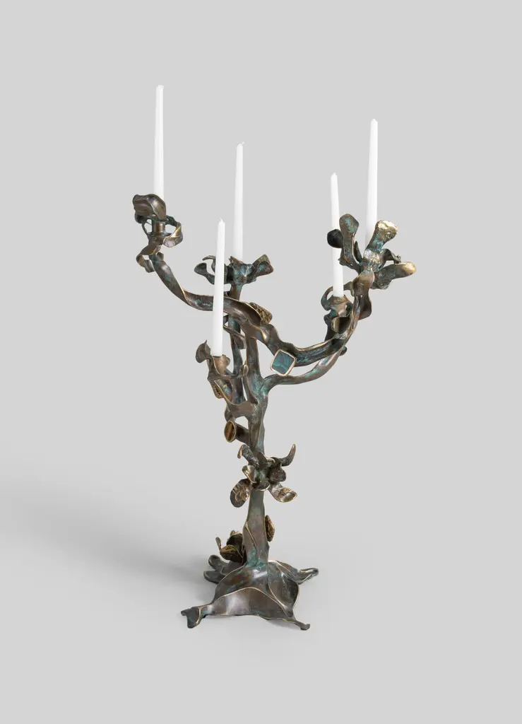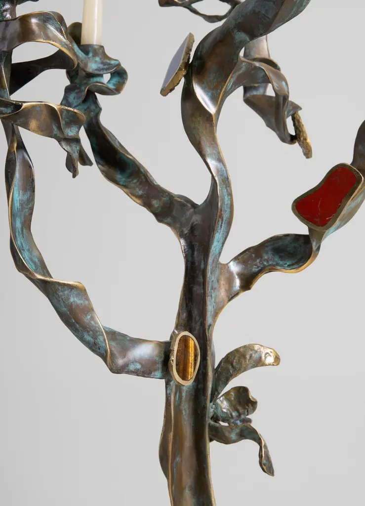 Glory Lily Candelabra In Brass With Precious Stone, Viya By Vikram Goyal