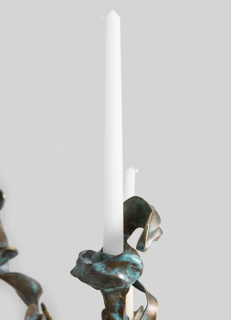 The Glory Lily flower dances in paradox, embodying breathtaking beauty and potent power. A striking climber, it isn’t your typical delicate flower, holding medicinal properties to cure many ailments. Our collection mirrors its dramatic, yet slender structure with its twists and curves in myriad shades of patinated cast brass. Like its namesake, this one is also to be admired.Candle Stand in brass with semi precious inserts. Handmade in India.Product DetailsMaterial: BrassInlay: Lapiz Lazuli, Tiger Eye, MalachiteSize: 23.5"L x 23"W x 32"H 59.7 L x 58.4 W x 81.3 H cmWeight: 11.56 kg 25.432 lbsNumber of Pieces: 1 Candle StandSKU: VCS2401This product has been handcrafted by local artisans. As such, slight variations are a testament to the unique character of a piece made by hand.