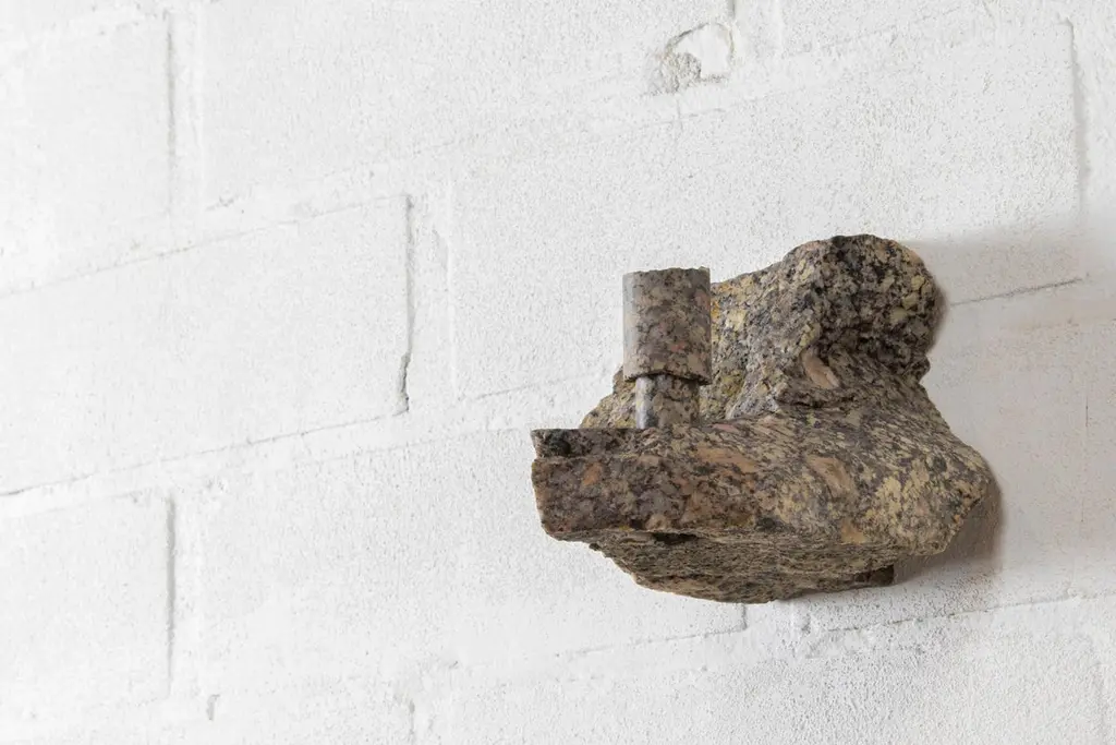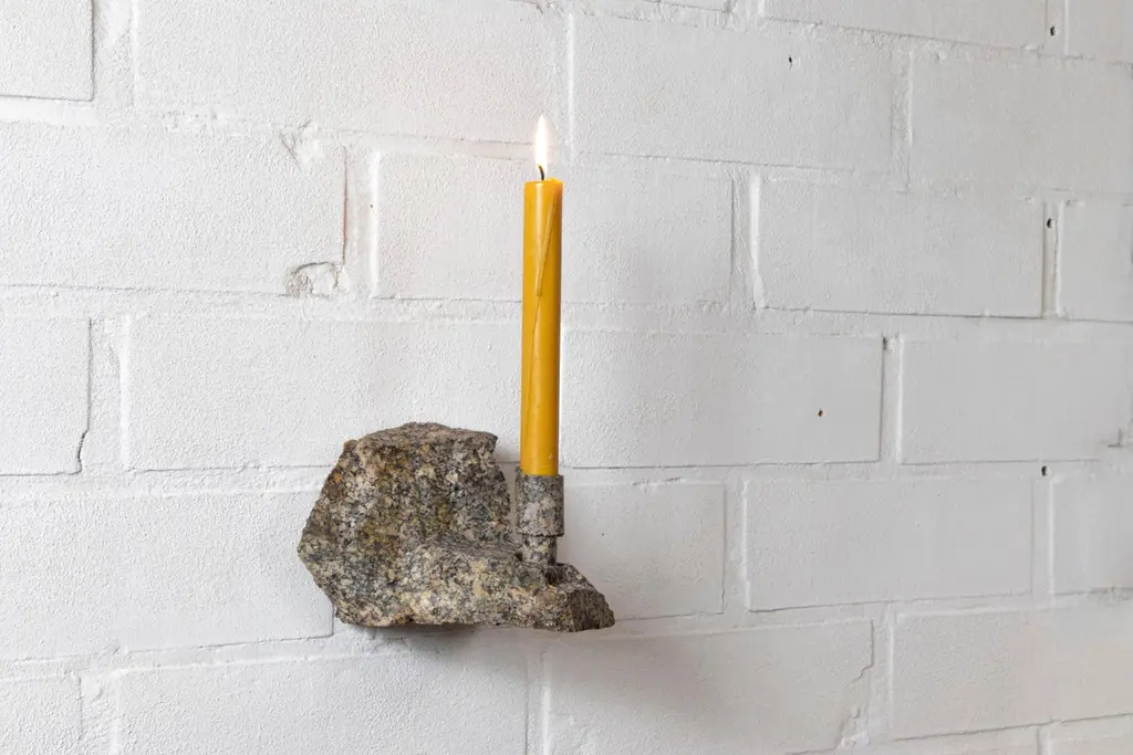 Granite Abra Candelabra by Studio DODimensions: D 15.5 x W 14.5 x H 13 cmMaterials: Granite, aluminum.2.5 kg.Stone and fire are connected in an ageless bond. A sparkle created by clashing two stones with each other has been igniting fire over centuries. At the same time stones are used to safely border campfires. The warmth of the stone and intimate flame, reflect here on our interior environment. The classical shapes of candle holders are brought to light by extracting it from the core of a stone. Set in a 21st-century interpretation, it connects a timeless design type with a primitive appearing but contemporary driven technology.Based in Antwerp, Studio DO is a stone cutting atelier founded by Dana Seachuga and Octave Vandeweghe. These two creatives work independently: Dana as a jewellery maker and Octave as an artist. For Studio DO they joined forces and share their creative visions and expertise. Driven by their affection for stone cutting, they research the material and cultural role of (gem)stones within the realm of functional objects. Using basic interventions, shapes and aesthetics, they try to search for the minimal action necessary to give a rock a (traditional) function.Studio DO works on design projects and takes commissions related to stone, art, design objects and jewellery. Label & Labour stand along each other as one, becoming inseparable.