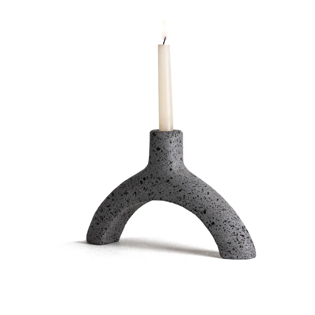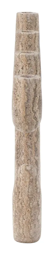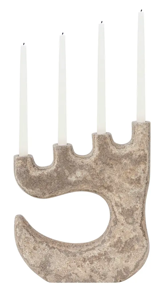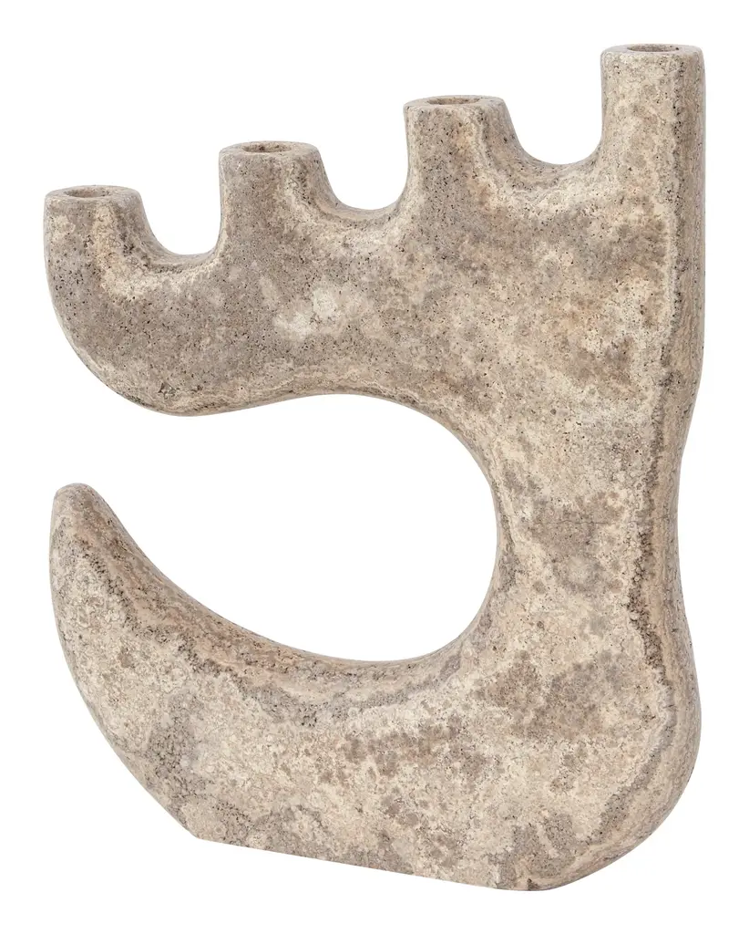 One thing is for sure — this is not your grandmother’s candelabra. A decided departure form the more classic designs you might expect, our Grotto Candelabra is crafted from natural travertine stone into an abstract, sculptural silhouette that looks as if it were formed by the earth itself. We love how its unique, stepped shape allows you to display four standard taper holders at varying heights for a unique display. The perfect finishing touch in any organic-modern space, our weighty Grotto Candelabra would be perfect adding a bit of height to a well-style mantel or as a simple yet visually striking centerpiece on the dining room table. •travertine•each is unique; variations in color and organic details should be expected Dimensions •13.5"W x 2"D x 14.25"H