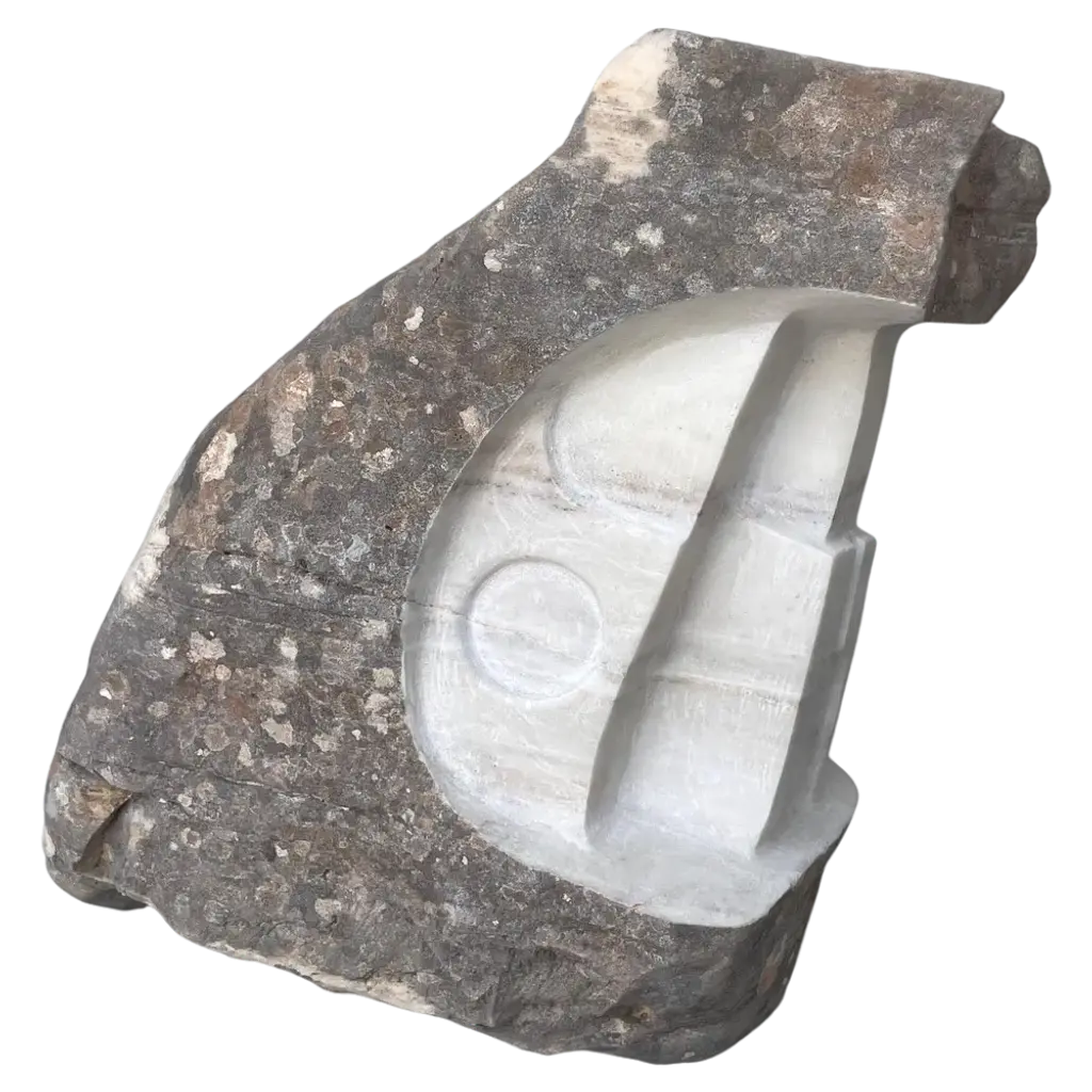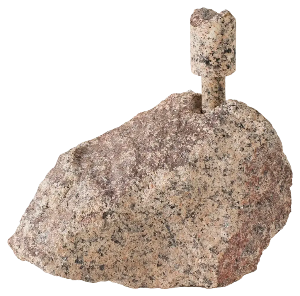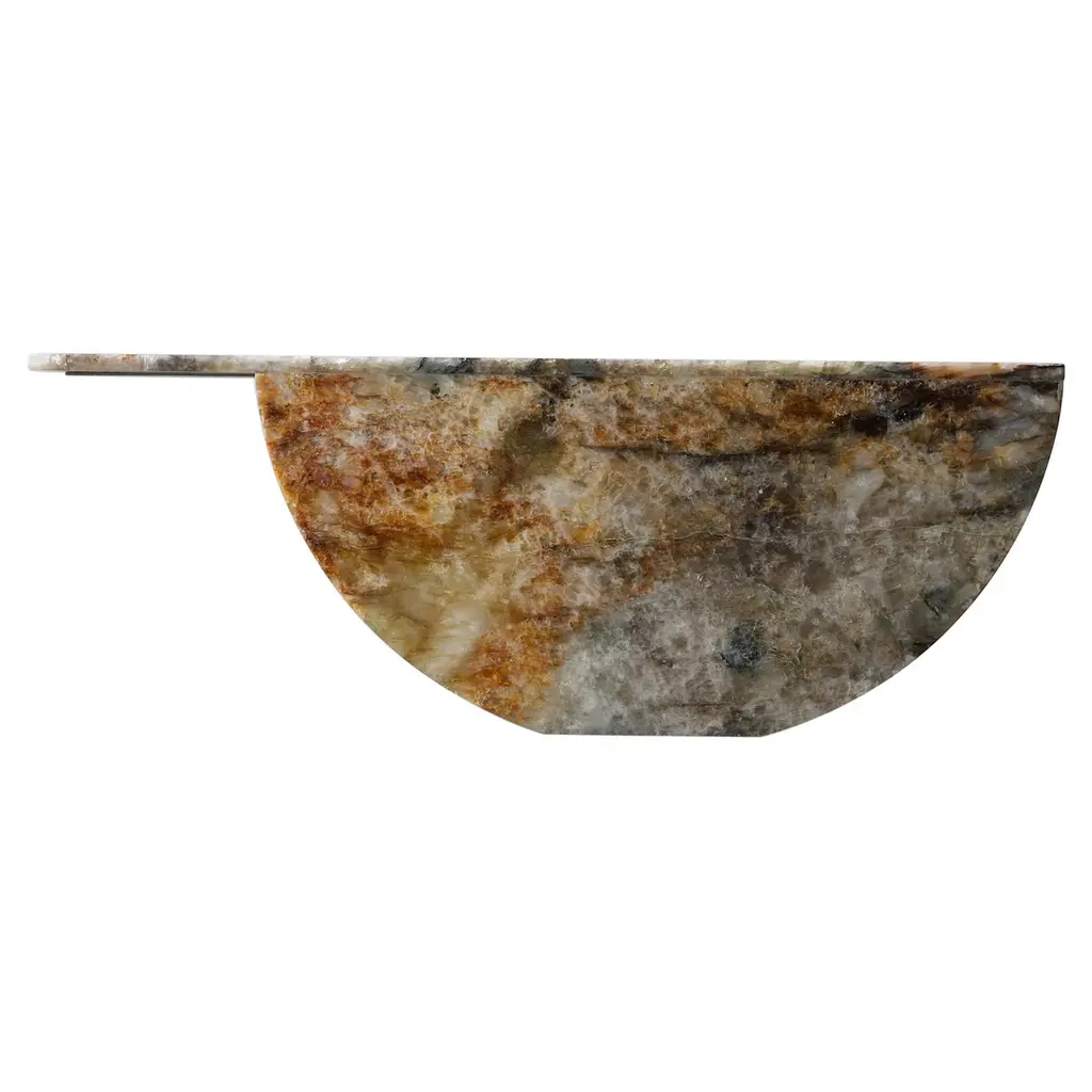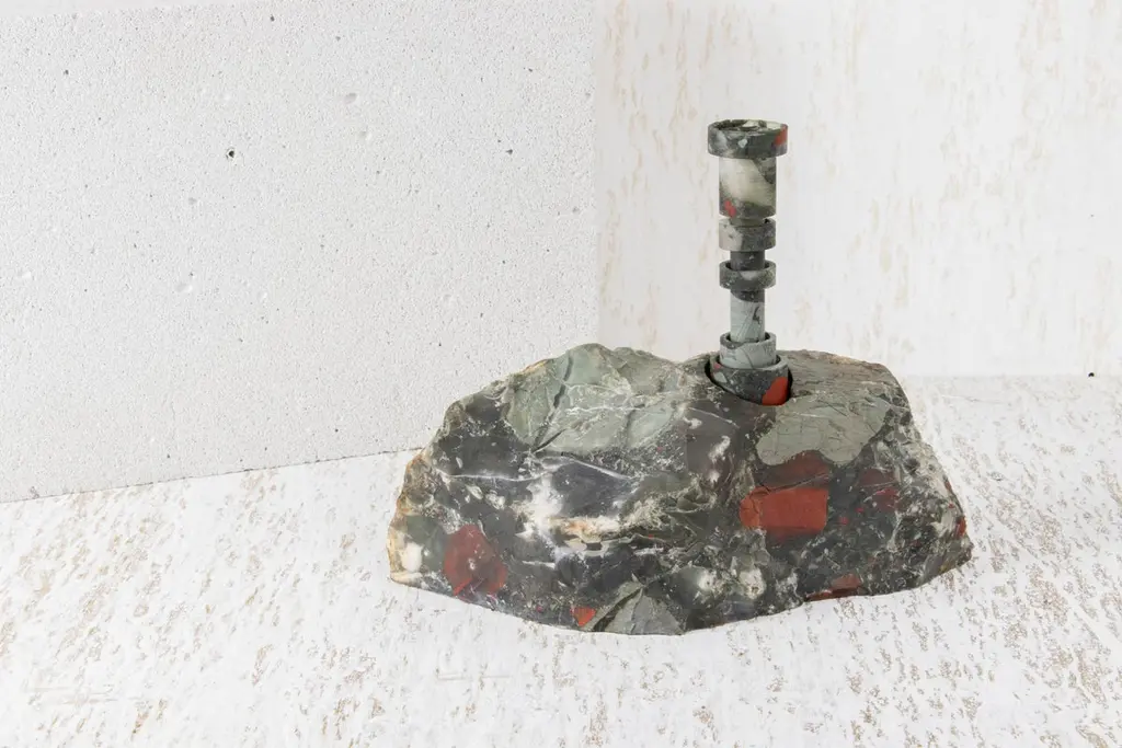 Heliotrope Seftonite Abra Candelabra by Studio DODimensions: D 25 x W 11 x H 20.5 cmMaterials: Heliotrope seftonite stone, copper.5 kg.Stone and fire are connected in an ageless bond. A sparkle created by clashing two stones with each other has been igniting fire over centuries. At the same time stones are used to safely border campfires. The warmth of the stone and intimate flame, reflect here on our interior environment. The classical shapes of candle holders are brought to light by extracting it from the core of a stone. Set in a 21st-century interpretation, it connects a timeless design type with a primitive appearing but contemporary driven technology.Based in Antwerp, Studio DO is a stone cutting atelier founded by Dana Seachuga and Octave Vandeweghe. These two creatives work independently: Dana as a jewellery maker and Octave as an artist. For Studio DO they joined forces and share their creative visions and expertise. Driven by their affection for stone cutting, they research the material and cultural role of (gem)stones within the realm of functional objects. Using basic interventions, shapes and aesthetics, they try to search for the minimal action necessary to give a rock a (traditional) function.Studio DO works on design projects and takes commissions related to stone, art, design objects and jewellery. Label & Labour stand along each other as one, becoming inseparable.