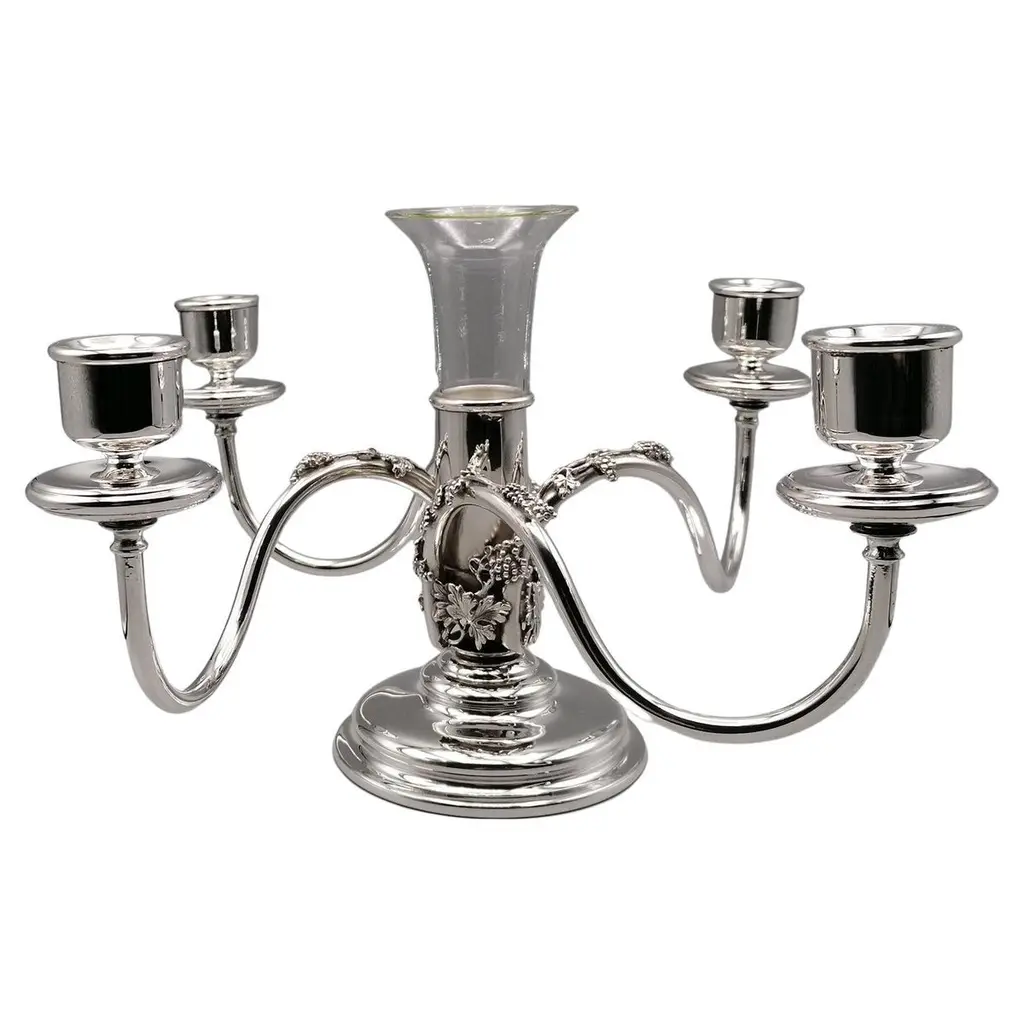 This silver plated Jardin D’Eden candelabra, which can hold up to five candles, adds refinement and elegance to any room. The intricate verdant pattern by designer Marcel Wanders is characterized by interlacing vines, plants and flowers and named after the most famous garden in history. The piece is signed by the designer. Thanks to its creations in silver, Christofle is a symbol of luxury and elegance. Since its founding in the mid-19th century, it has been a continous innovative force and has infused each era with a new art of living. Thus, over time, this prestigious company has revolutionized styles, techniques, and methods for the production and distribution of silver plate and the decorative arts. A player in and privileged witness to the evolution of taste, customs, and traditions, Christofle has always seen its name associated with major creative trends, renowned artists such as Man Ray or Jean Cocteau, avant-garde architects such as Gio Ponti, and modernist silversmiths such as Lino Sabattini and Christian Fjerdingsatd, as well as present-day designers such as Andrée Putman, Martin Szekely or Ora ïto. Today, as in the past, whether gracing the tables of emperors, princes, or maharajas, in palaces, on board the Trans-Siberian Railway, Orient Express, or transatlantic ocean liners, or in the contemporary restaurants, Christofle continues to make an impression.
