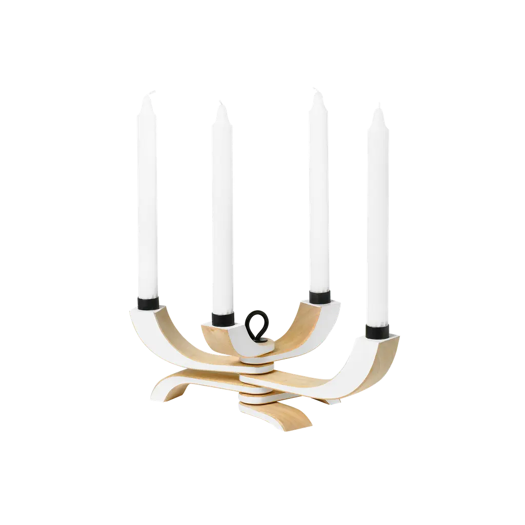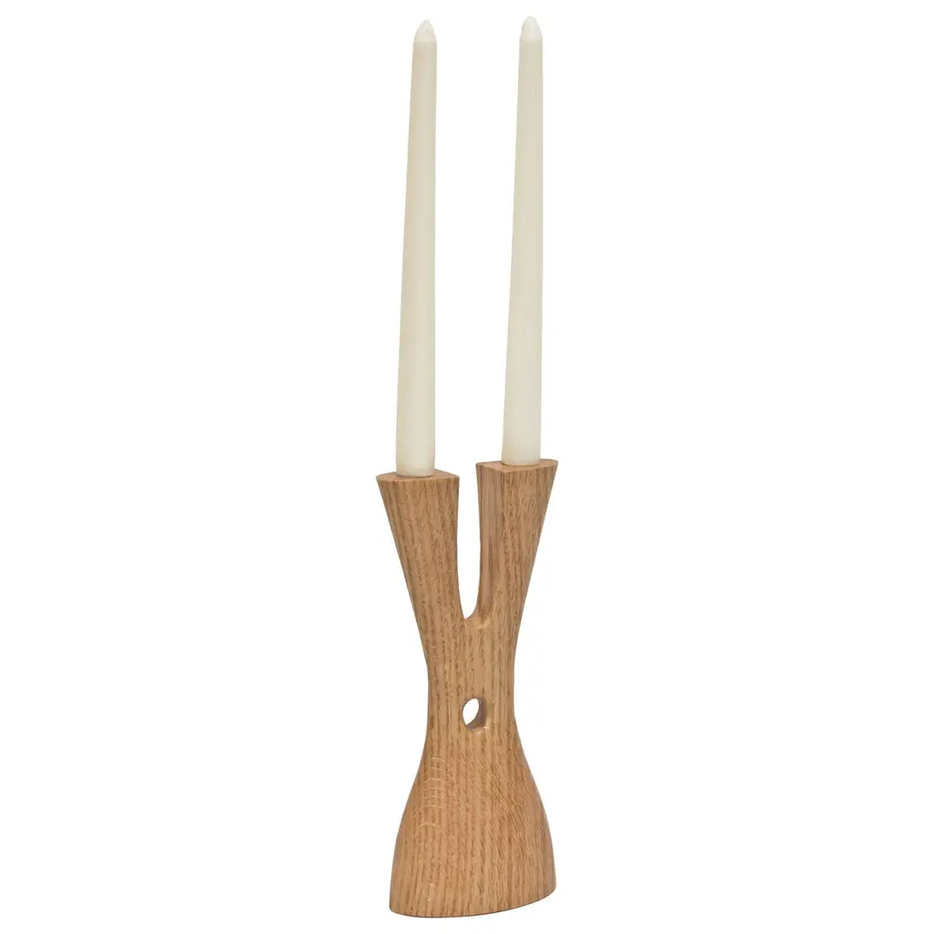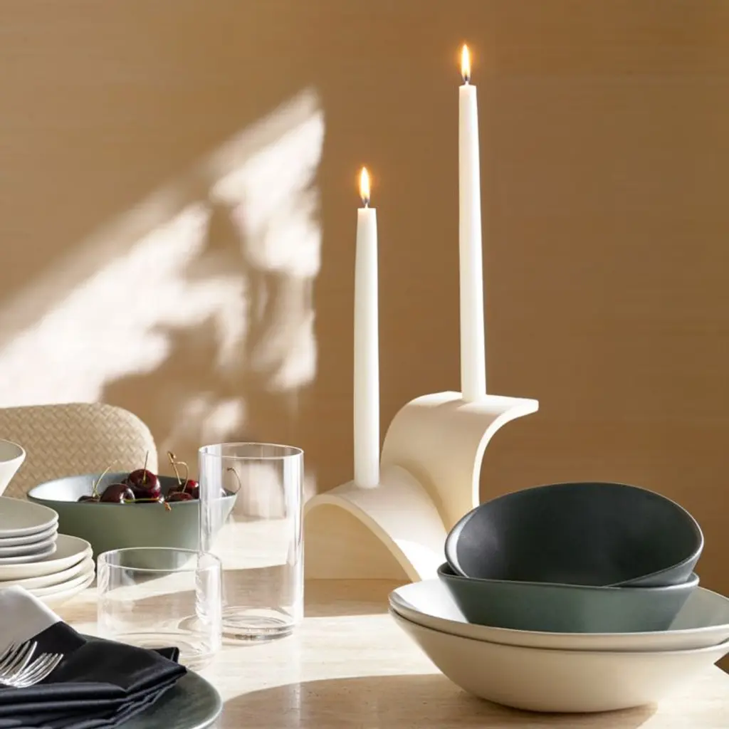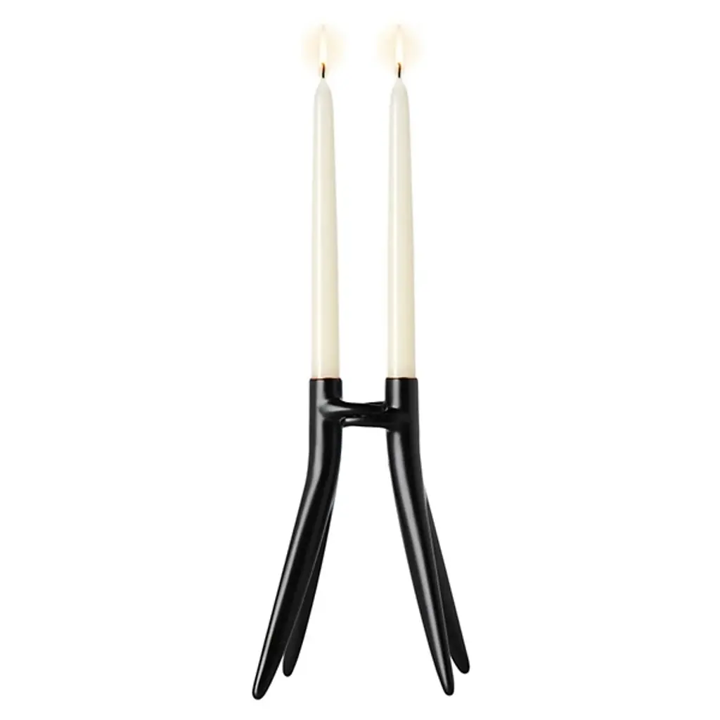 Inspired by the art of paper folding, handcrafted ceramic candelabra is a bold, modern update on the traditional. Skilled artisans shape the clean ceramic curves by hand, bending and folding the clay to support two taper candles. CB2 exclusive.