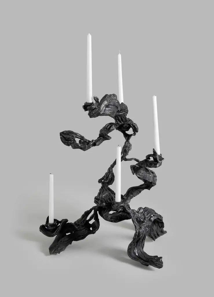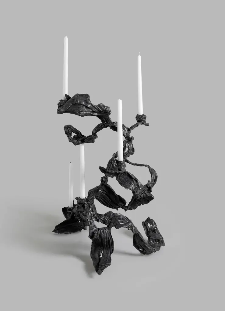 Leher Candelabra Large in Brass, Viya by Vikram GoyalWavy, weighty, and wondrous, the Leher candelabra reimagines nature’s motion in metal. Cast in brass, the fluid forms mimic the tie-and-dye patterns of the Leheriya textile, an age-old tie-dye craft of Rajasthan inspired by the natural undulations of the desert. Each piece ascends upwards, winding and rhythmic, mirroring the wind-sculpted patterns of the sweeping sand dunes, capturing the untamed beauty of nature.Candelabra in brass. Handmade in India.Product DetailsMaterial: BrassSize: 21"L x 15"W x 25.5"H 53.3 L x 38.1 W x 64.8 H cmWeight: 15.2 kg 33.44 lbsNumber of Pieces: 1 CandelabraSKU: VCS2602This product has been handcrafted by local artisans. As such, slight variations are a testament to the unique character of a piece made by hand.