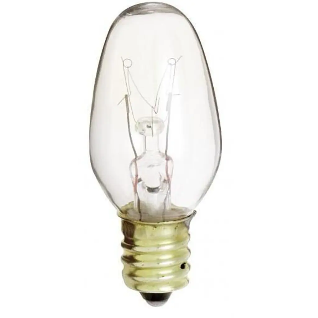 4 watt C7 Incandescent; Clear; 3000 Average rated hours; 16 lumens; Candelabra base; 120 volts; 2/Card