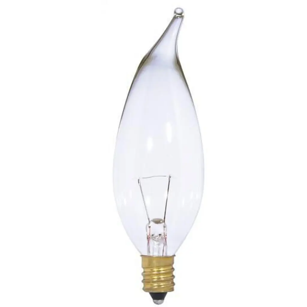 15 watt CA8 Incandescent; Clear; 1500 Average rated hours; 100 lumens; Candelabra base; 120 volts
