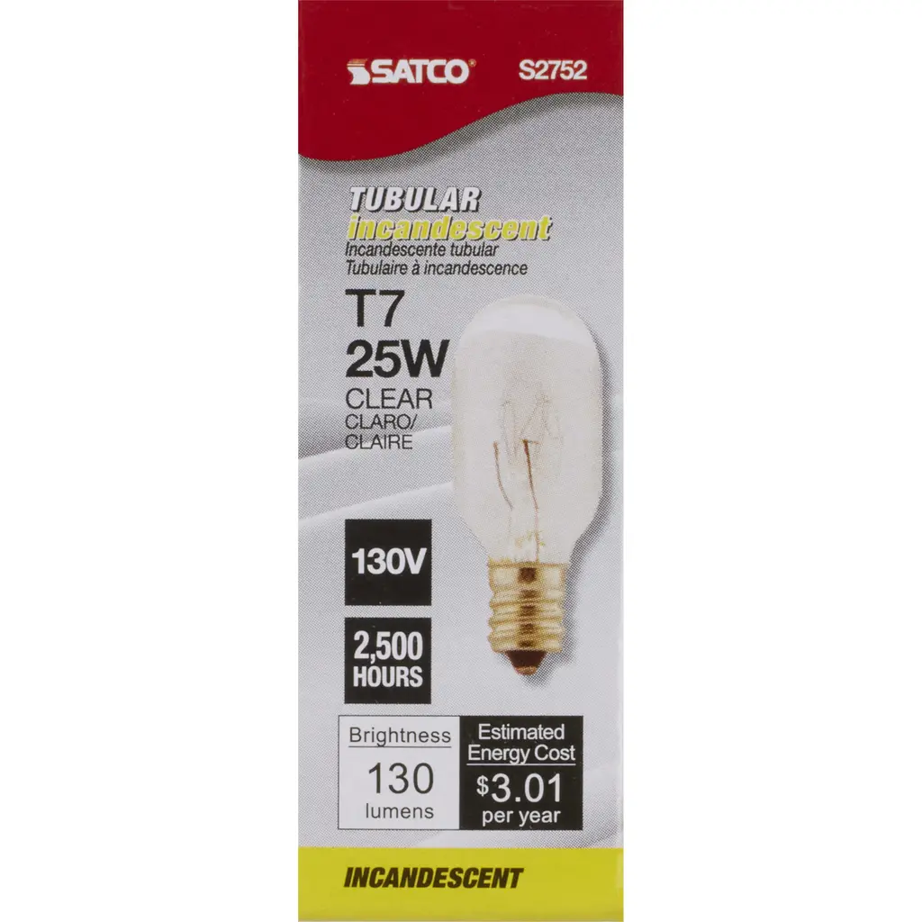 25 Watt T7 Incandescent - Clear - Candelabra base - 130 Volt