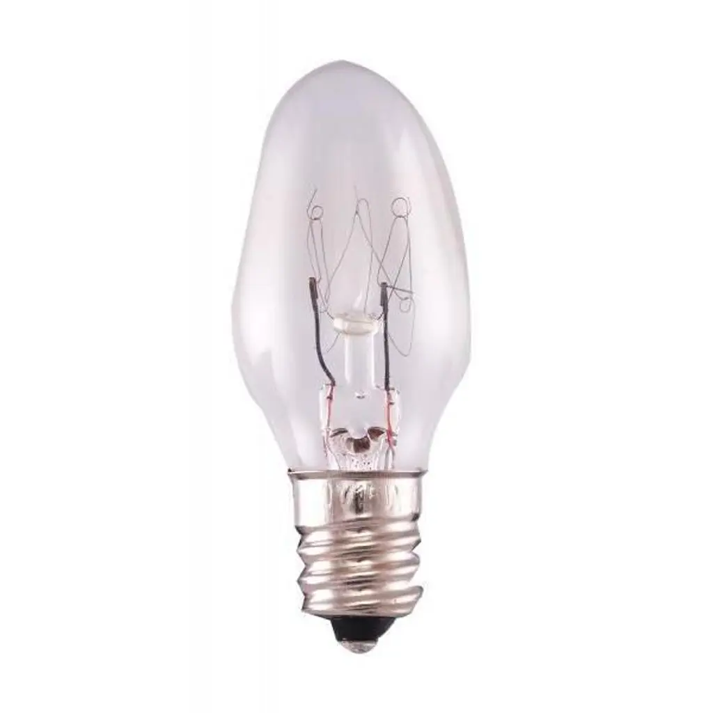 12 watt S6 Incandescent; Clear; 1500 Average rated hours; 30 lumens; Candelabra base; 250 volts