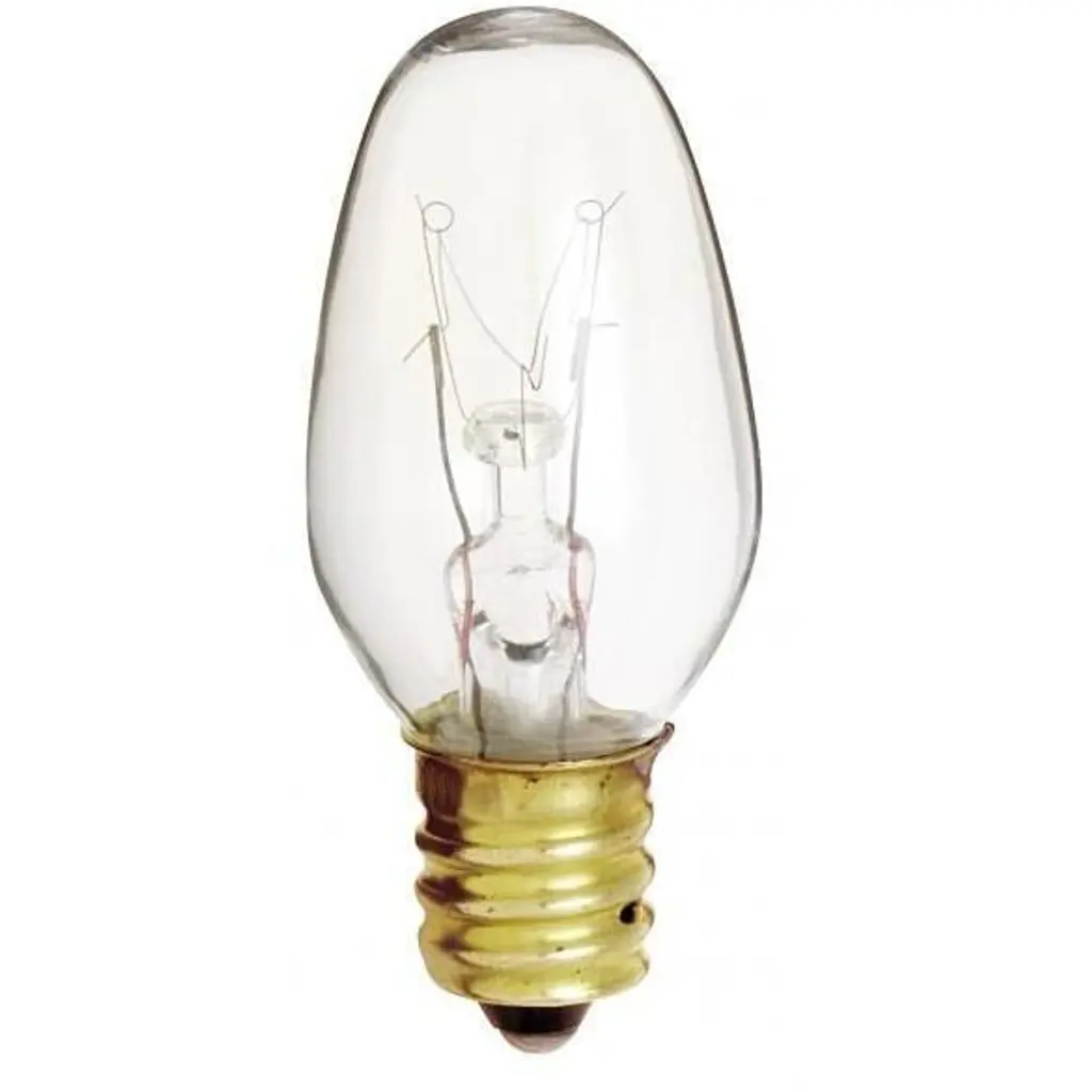 15 watt T6 Incandescent; Clear; 2000 Average rated hours; 90 lumens; Candelabra base; 145 volts