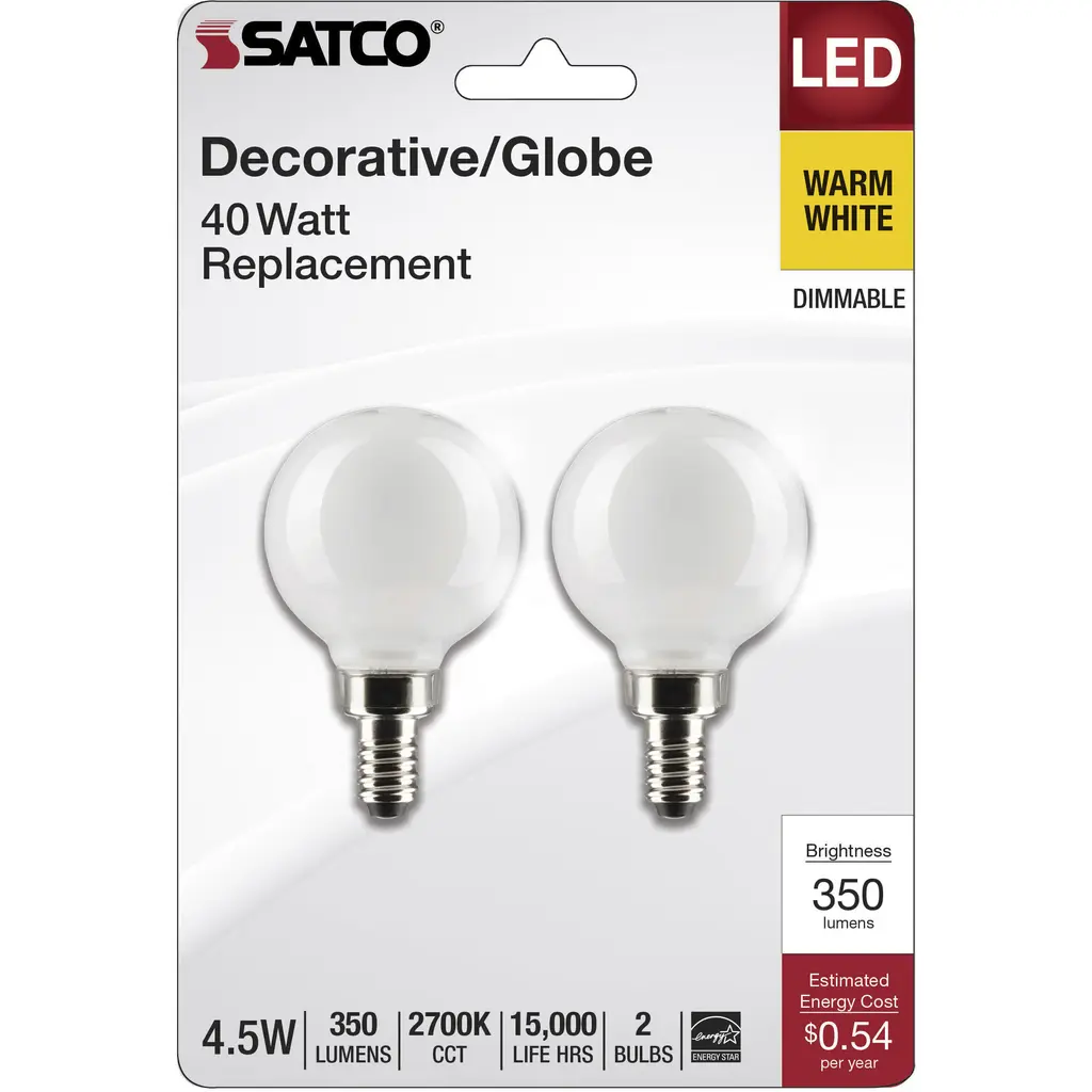 4.5-Watt G16.5 LED - White - Candelabra Base - 2700K - 350 Lumens - 120 Volts - 2-Pack
