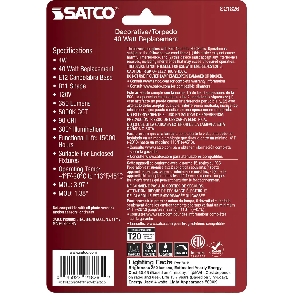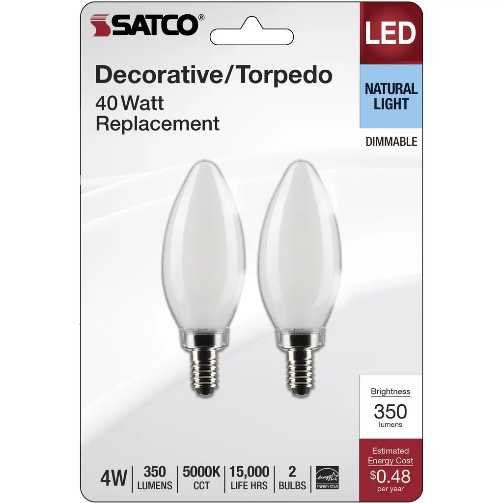 4-Watt B11 LED - Frosted - Candelabra Base - 5000K - 350 Lumens - 120 Volts - 2-Pack