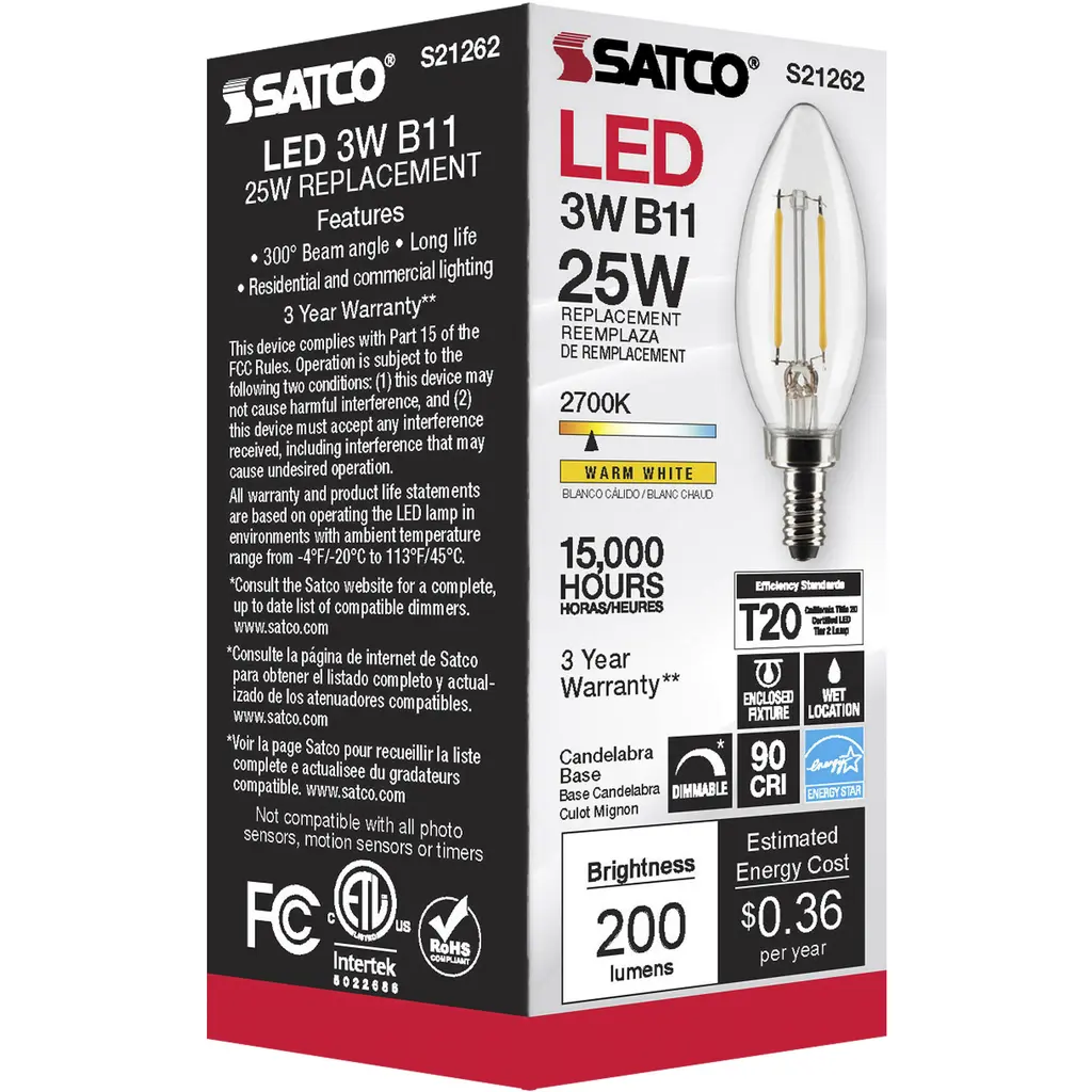 3 Watt B11 LED Lamp - Clear - Candelabra Base - 90 CRI - 2700K - 120 Volts