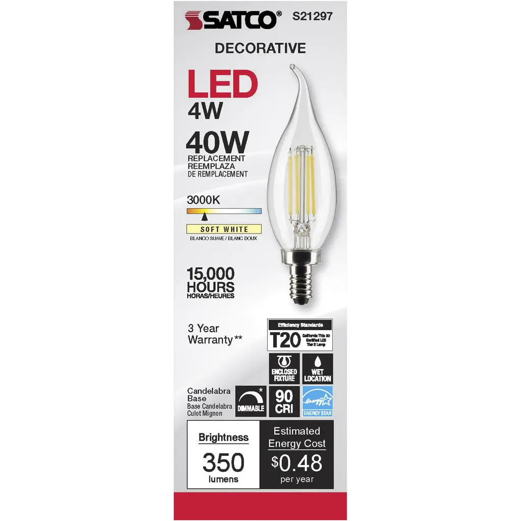 Lumos Led Candelabra Candelabra 4.00 Watt 3000k Led Flame Tip
