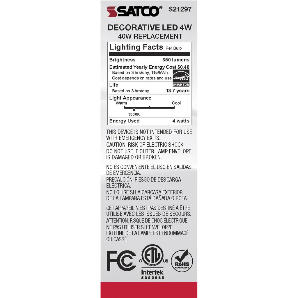 4 Watt CA11 LED Lamp - Clear - Candelabra Base - 90 CRI - 3000K - 120 Volts