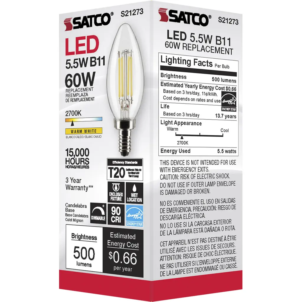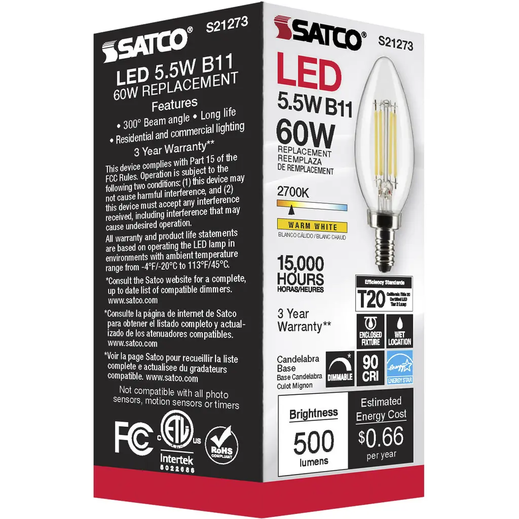 Lumos Led Candelabra Candelabra 5.50 Watt 2700k Led Filament