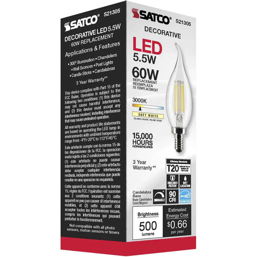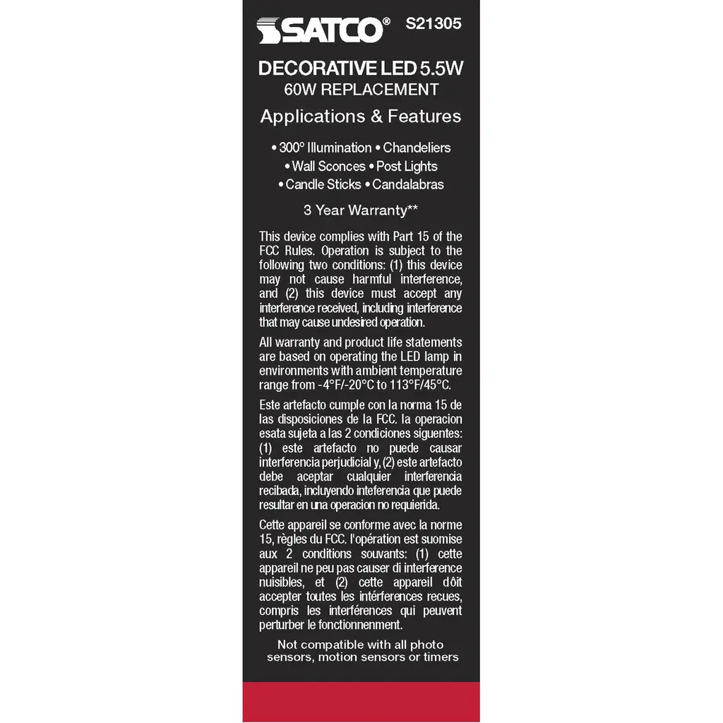 Lumos Led Candelabra Candelabra 5.50 Watt 3000k Led Filament