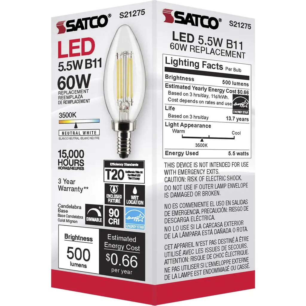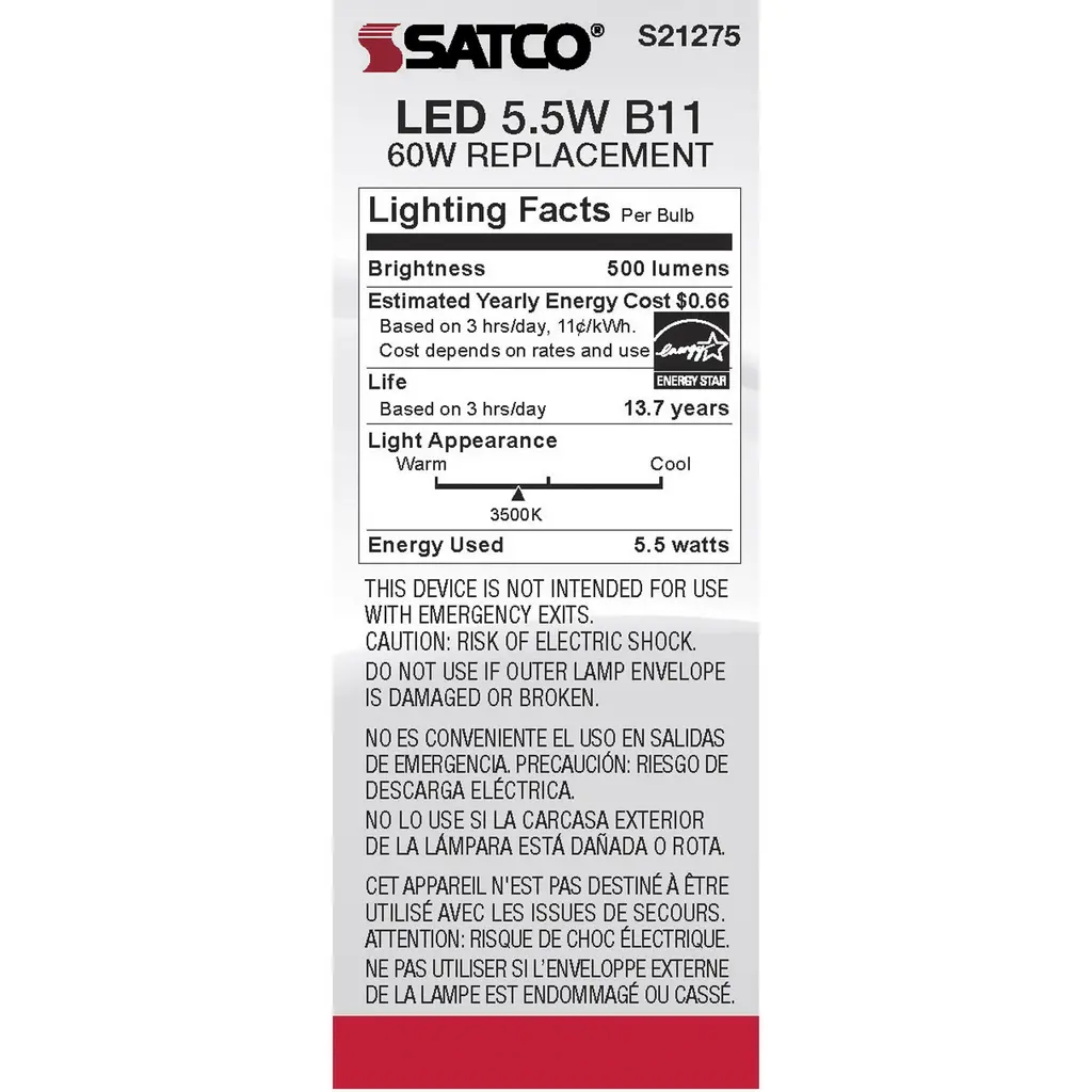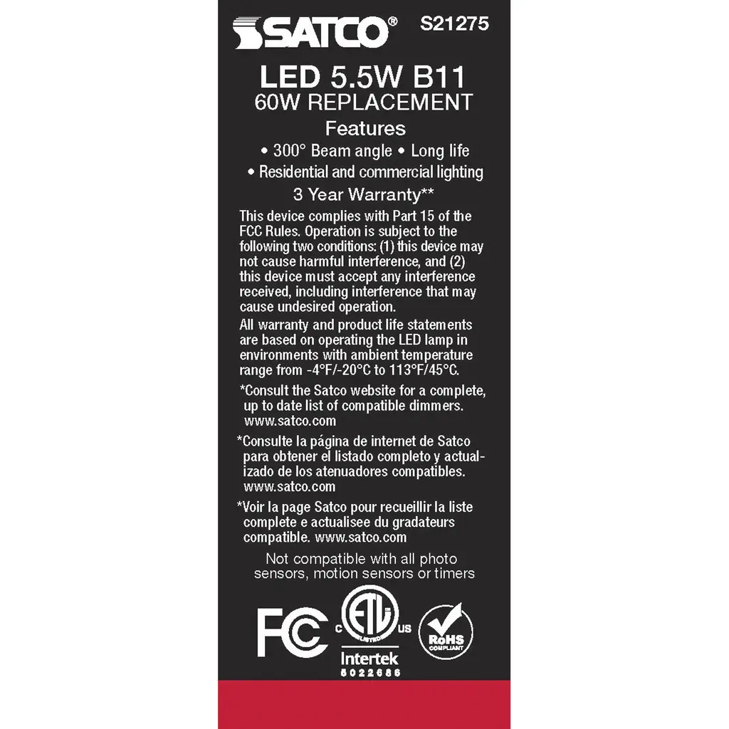 5.5 Watt B11 LED Lamp - Clear - Candelabra Base - 90 CRI - 3500K - 120 Volts