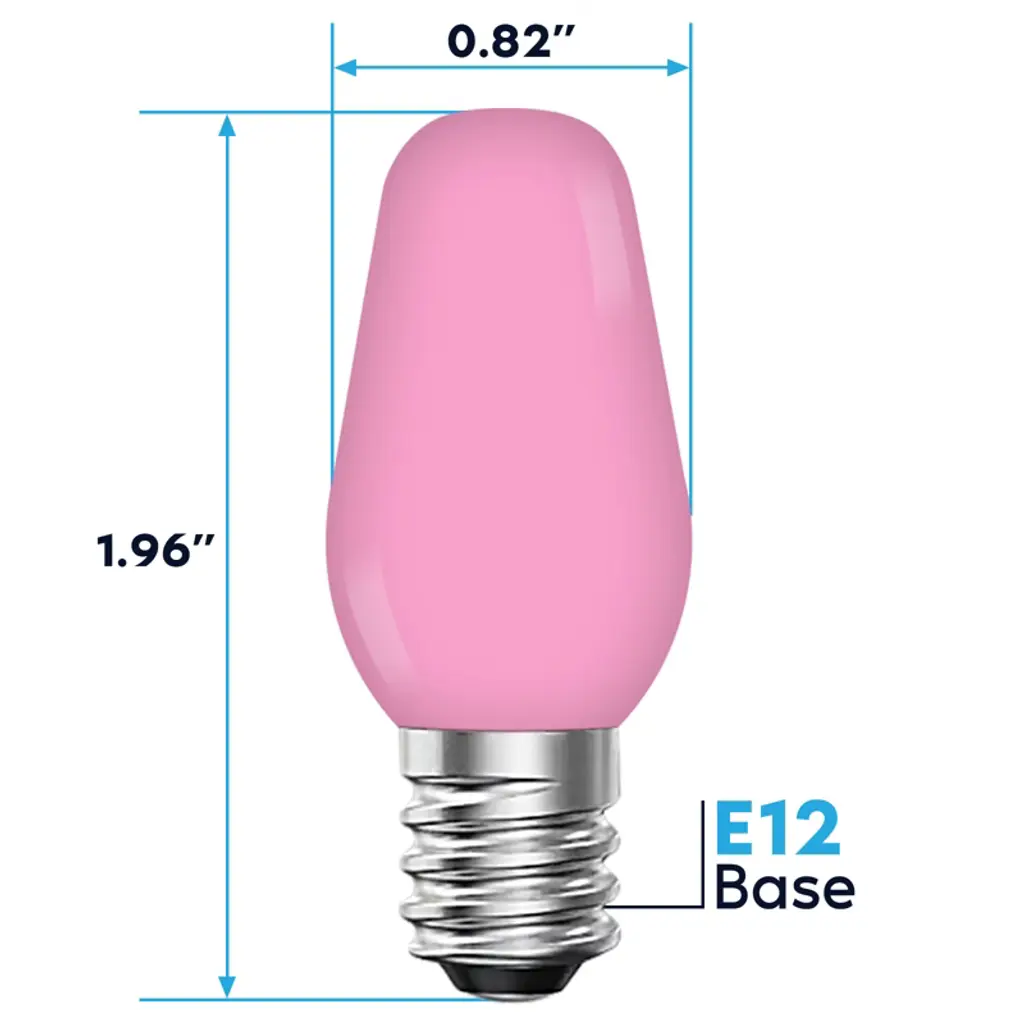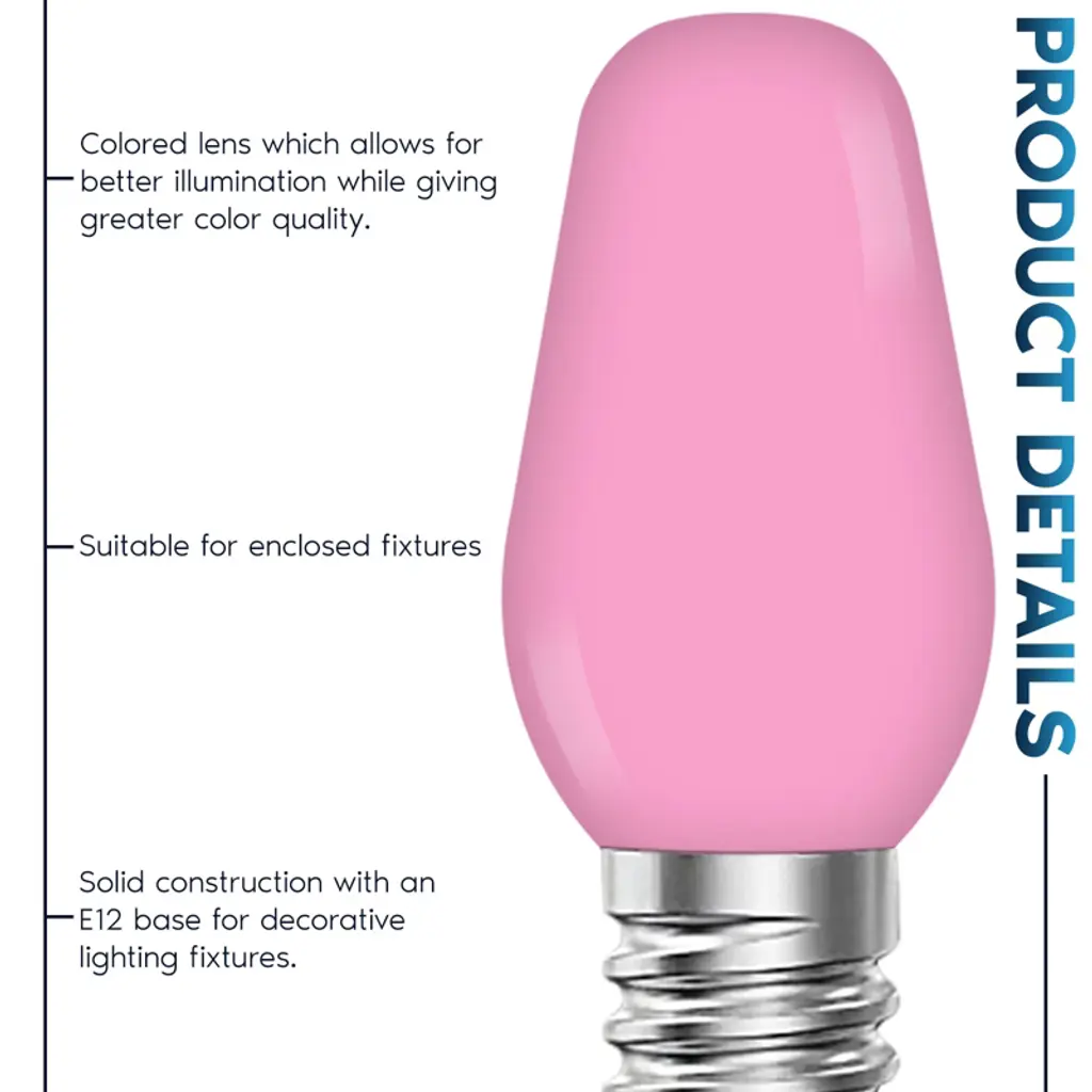 Luxrite C7 Led Pink Replacement Light Bulbs, String Lights, 0.5w, Shatterproof Colored Candelabra Bulb, Enclosed Fixture Rated E12 Base 6 Pack