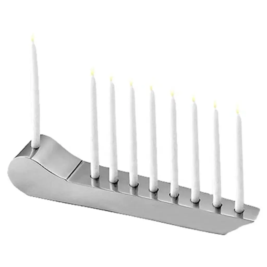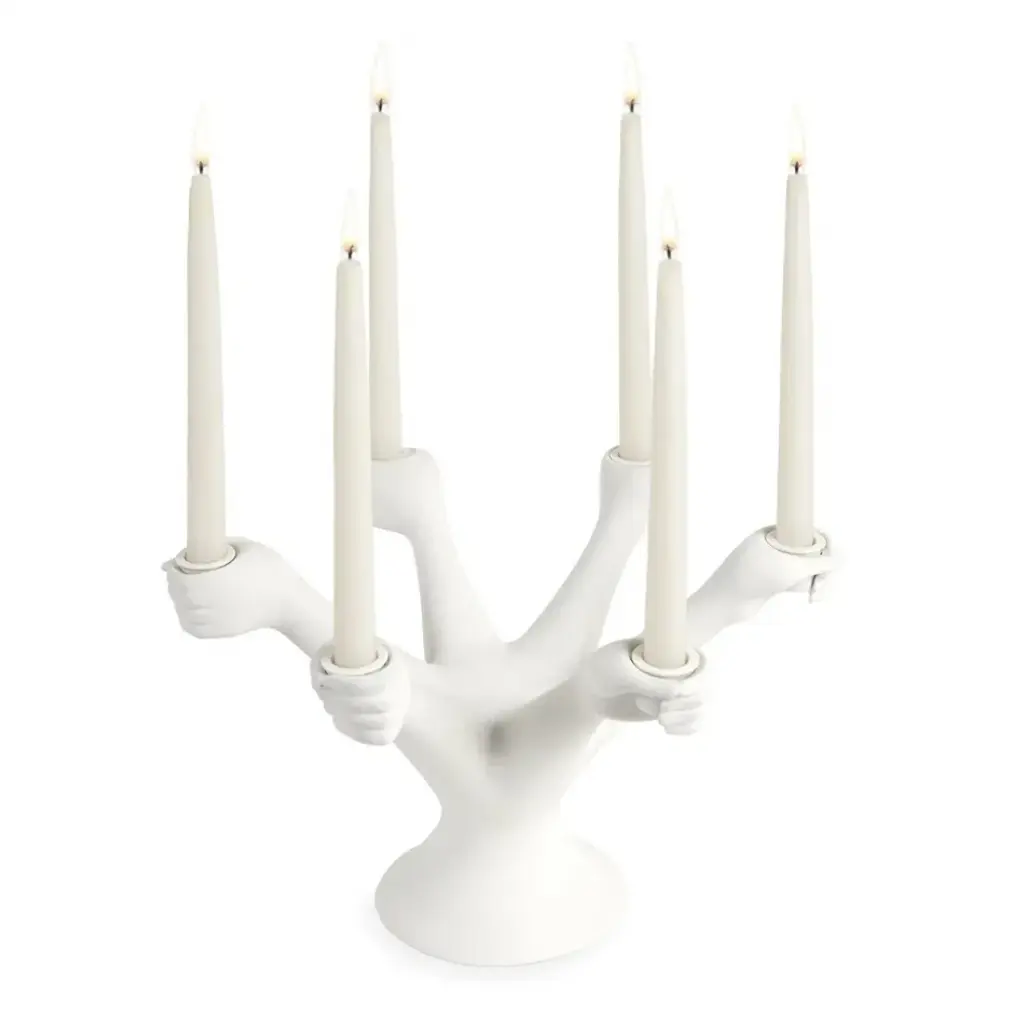 An elemental animal form with subtle layers of pattern and decoration finished with a soft satin matte glaze. This hot dog starts its journey in our Soho pottery studio where Jonathan and his team sculpt the original model in clay. The prototype is then sent to our workshop in Peru where skilled artisans produce each menorah in high-fired stoneware. Unexpected and original.
