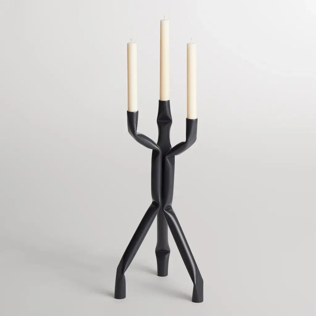 Bring it out at night. Pinched powder-coated steel bends to create a modern candelabra and avant-garde eye candy. Sink your teeth into two satisfying sizes, with colors to suit introverts and extroverts.