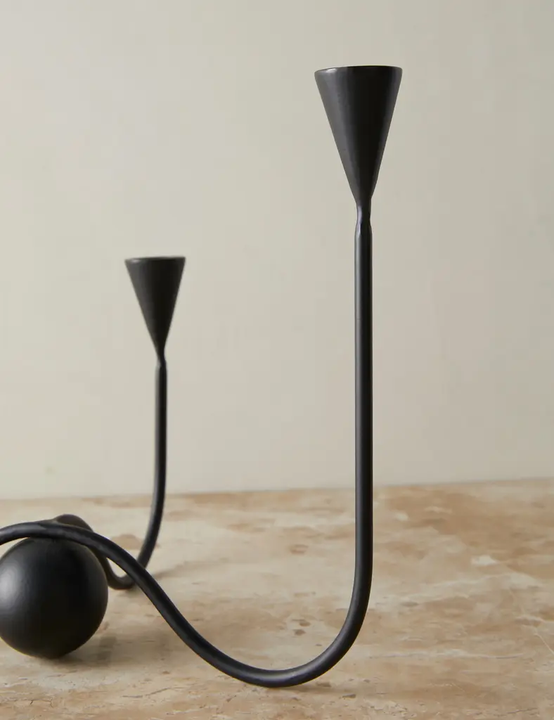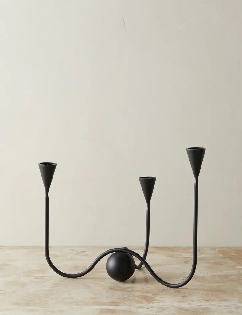 Style your table for casual splendor with this beautifully shaped candelabra. The slender stems flow from the rounded base in a pleasing play of material of formbalancing timeless elegance with a modern poise. This candelabra is from our exclusive Sarah Sherman Samuel collaboration and features all the trademarks of her warm, edited style.