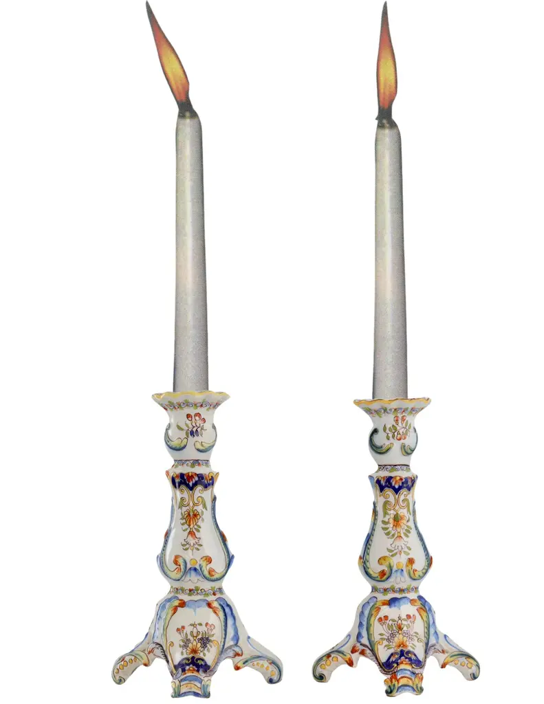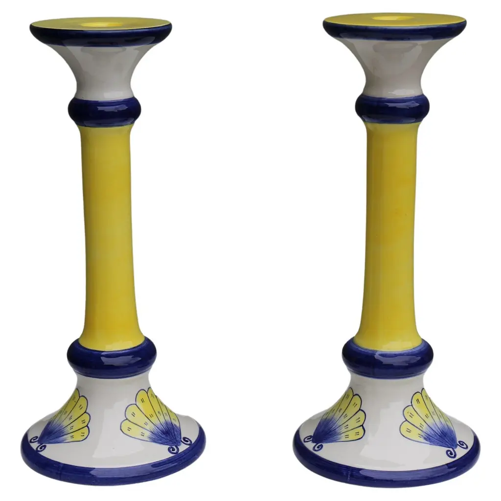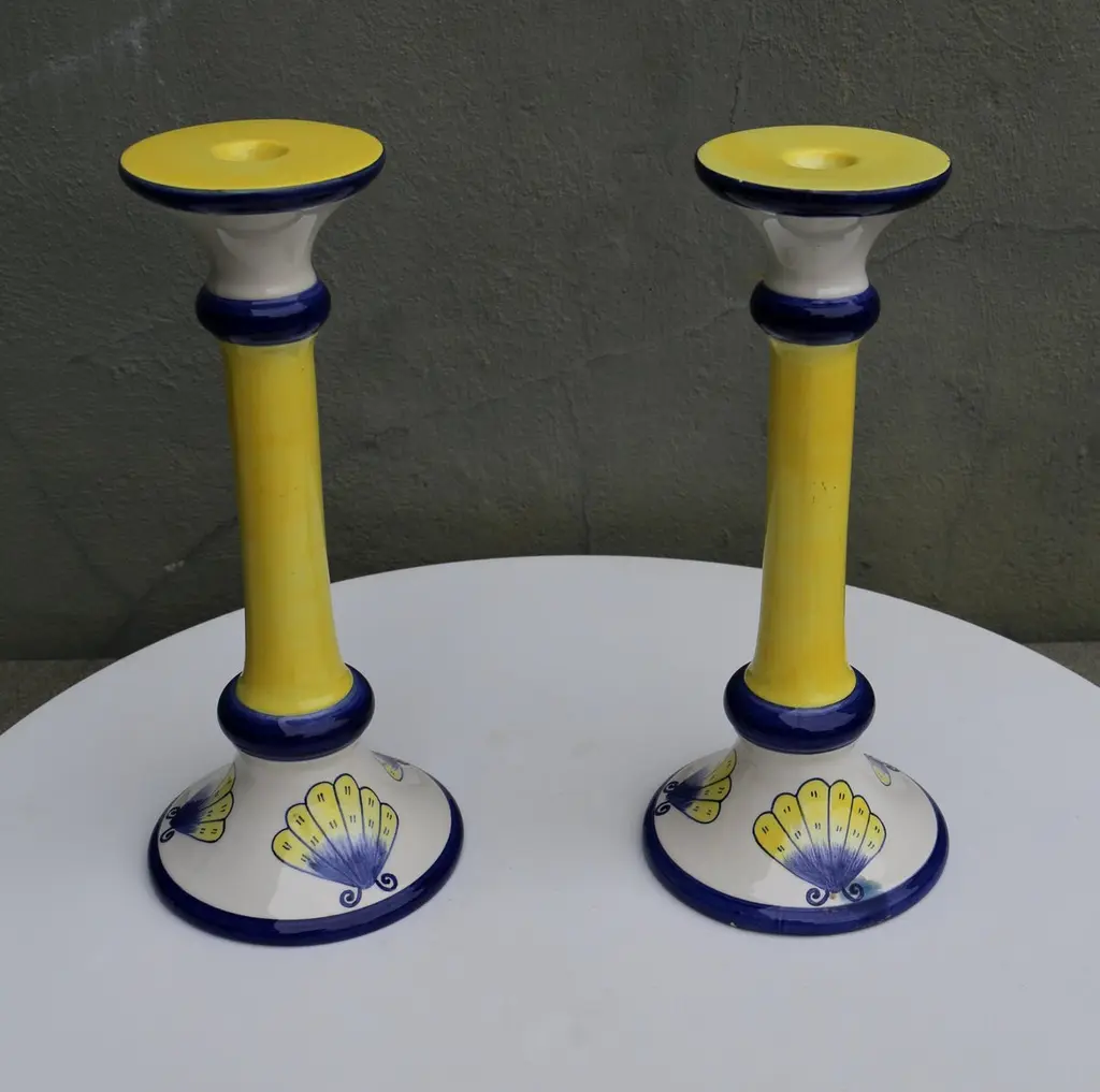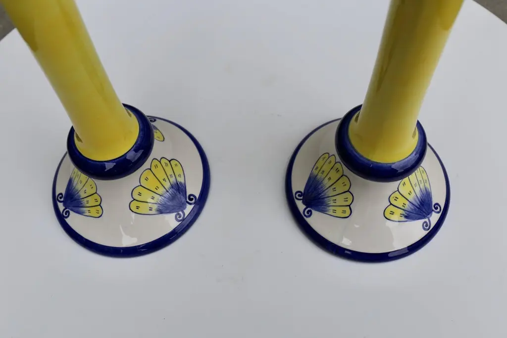 Pair Italian Hand Painted Butterfly Porcelain Candelabra