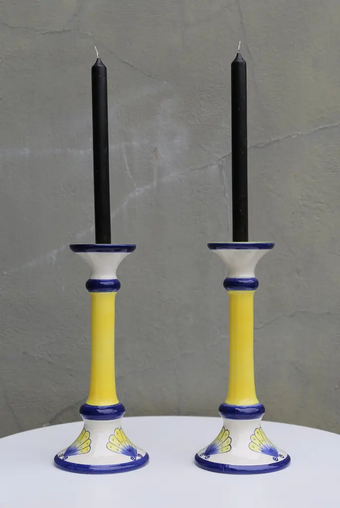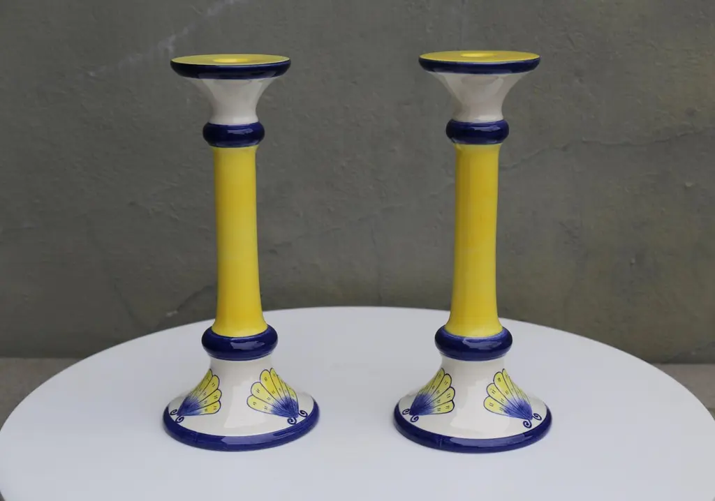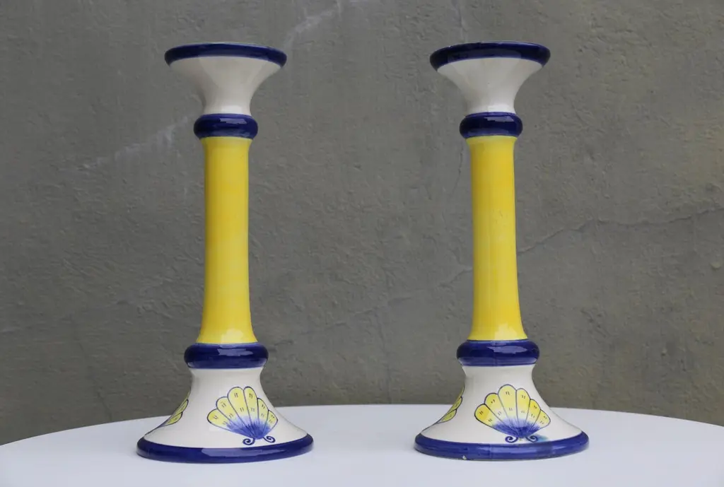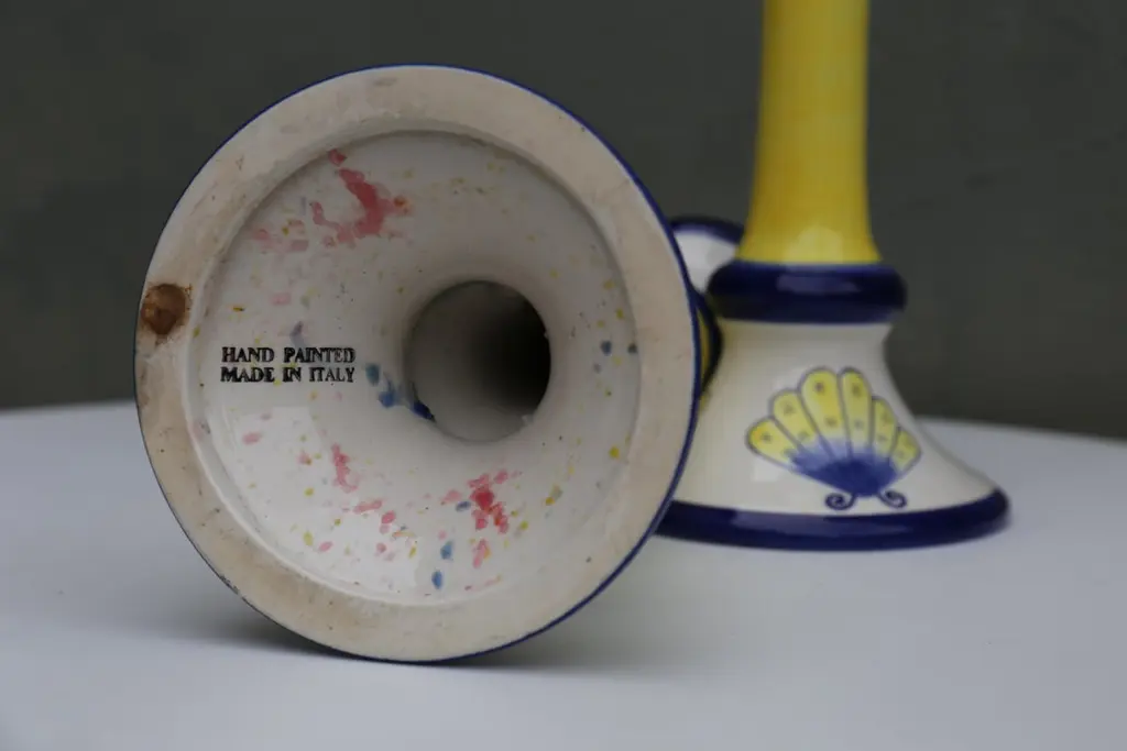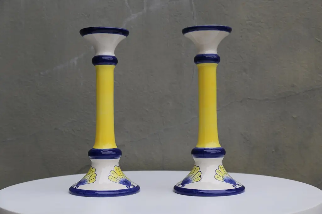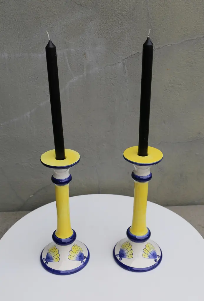 Pair Italian Hand Painted Butterfly Porcelain Candelabra