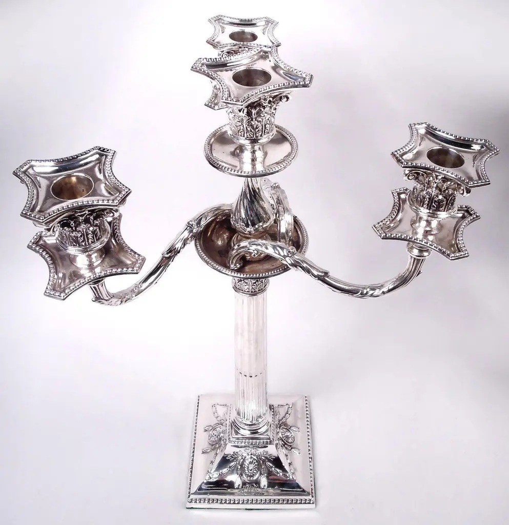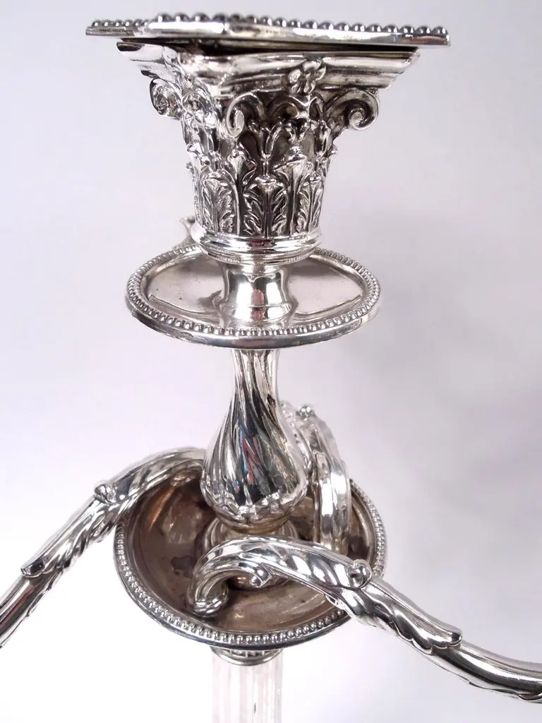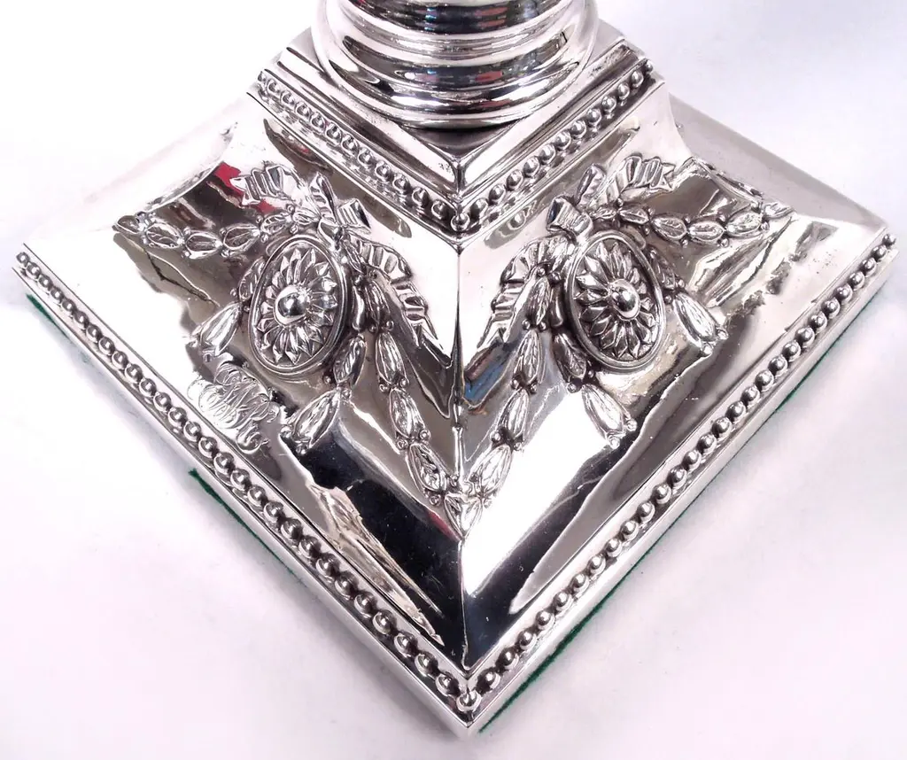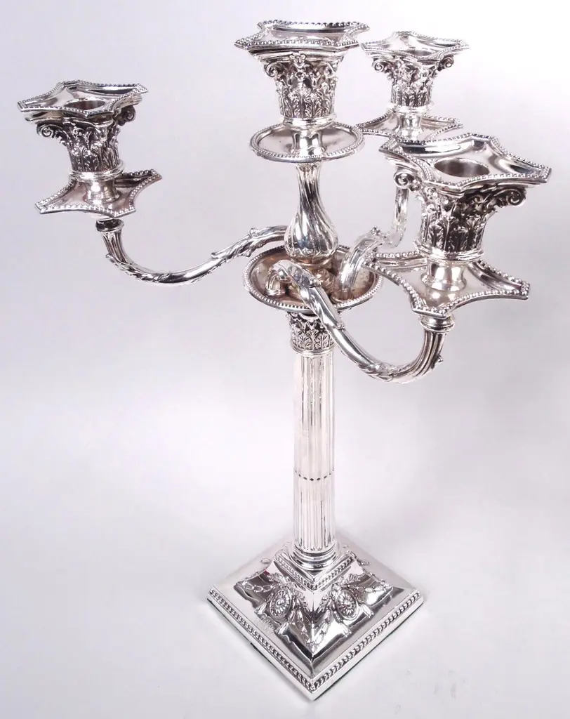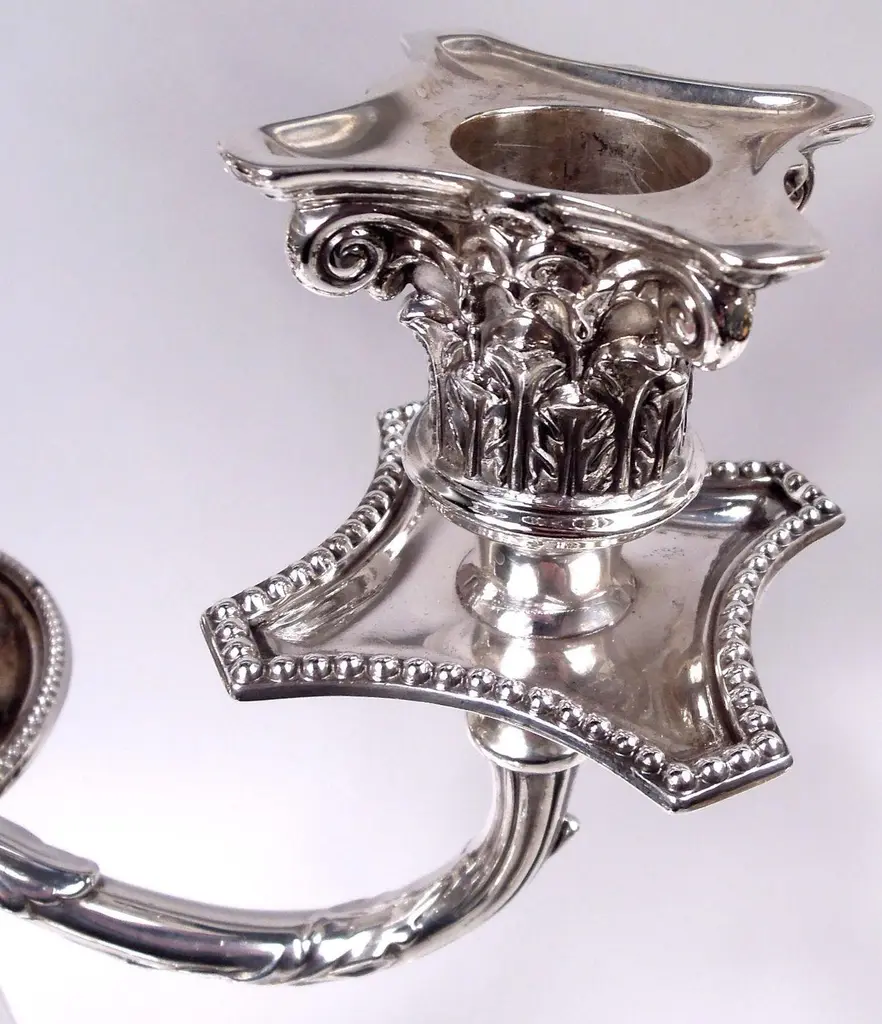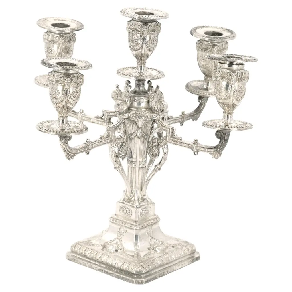 Pair Of English Victorian Neoclassical Sterling Silver 4-Light Candelabra, 1882