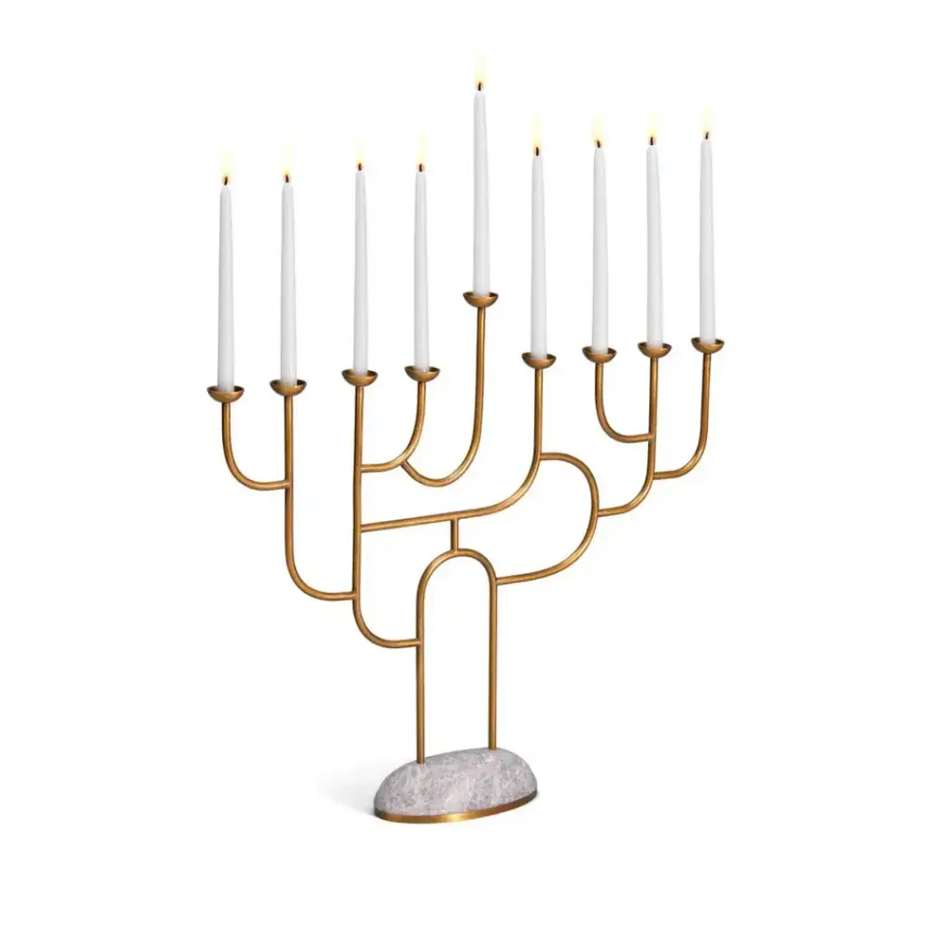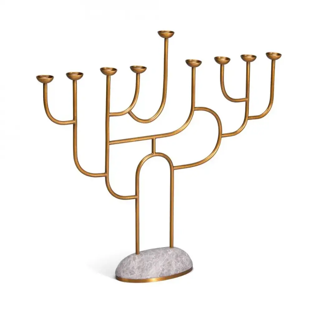 Inspired by the street’s maze in the old City of Jerusalem. Hand sculpted in brass and gris-marble, this modern take on the Hanukkah menorah evokes a sense of lightness and balance through its abstract, geometric structure. Prior to founding L’Objet in 2004, Israeli-born Elad Yifrach was a successful designer in Beverly Hills. He was creating beautiful interiors, but he was frustrated by the limited options available in home accessories, so he set out to create something better. L’Objet’s collections are diverse, but they are almost always inspired by nature and architecture. Many of his exquisite serving pieces rest in a base of hand-crafted gold foliage, other pieces feature intricate design and beadwork, and some of the most striking objects actually look like miniature buildings. And despite the lux feel, much of the line is practical with just a touch of whimsy.