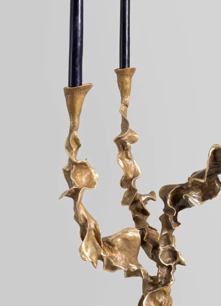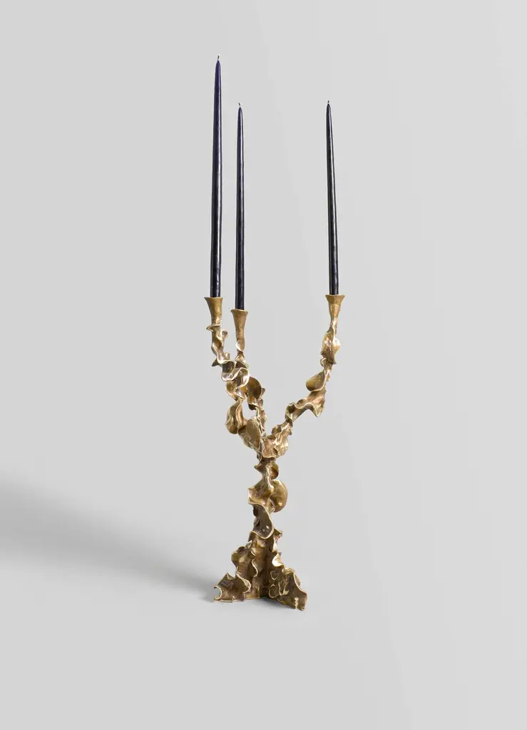 Saffron Candelabra in Brass, Viya by Vikram GoyalWith moniker’s such as red gold, exquisite thread or golden light, saffron captivates us all. Ancient Romans prized them for their fragrance, Egyptians for their healing touch, and Mughals for their culinary alchemy. More than just a flavour, saffron threads hold secrets of ancient Indian medicine. From spice routes to royal courts, it now finds new expression in our collection of contemporary bronzed objects.Candle stand in brass. Handmade in India.Product DetailsMaterial: BrassSize: 14"L x 14"W x 27"H 35.6 L x 35.6 W x 68.9 H cmWeight: 8.75 kg 19.25 lbsNumber of Pieces: 1 Candle StandSKU: VCS1501This product has been handcrafted by local artisans. As such, slight variations are a testament to the unique character of a piece made by hand.