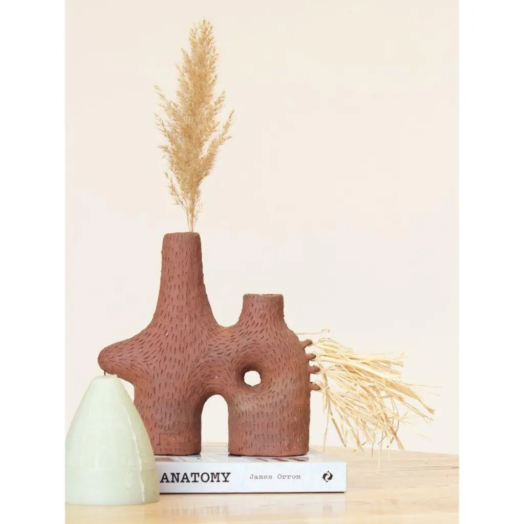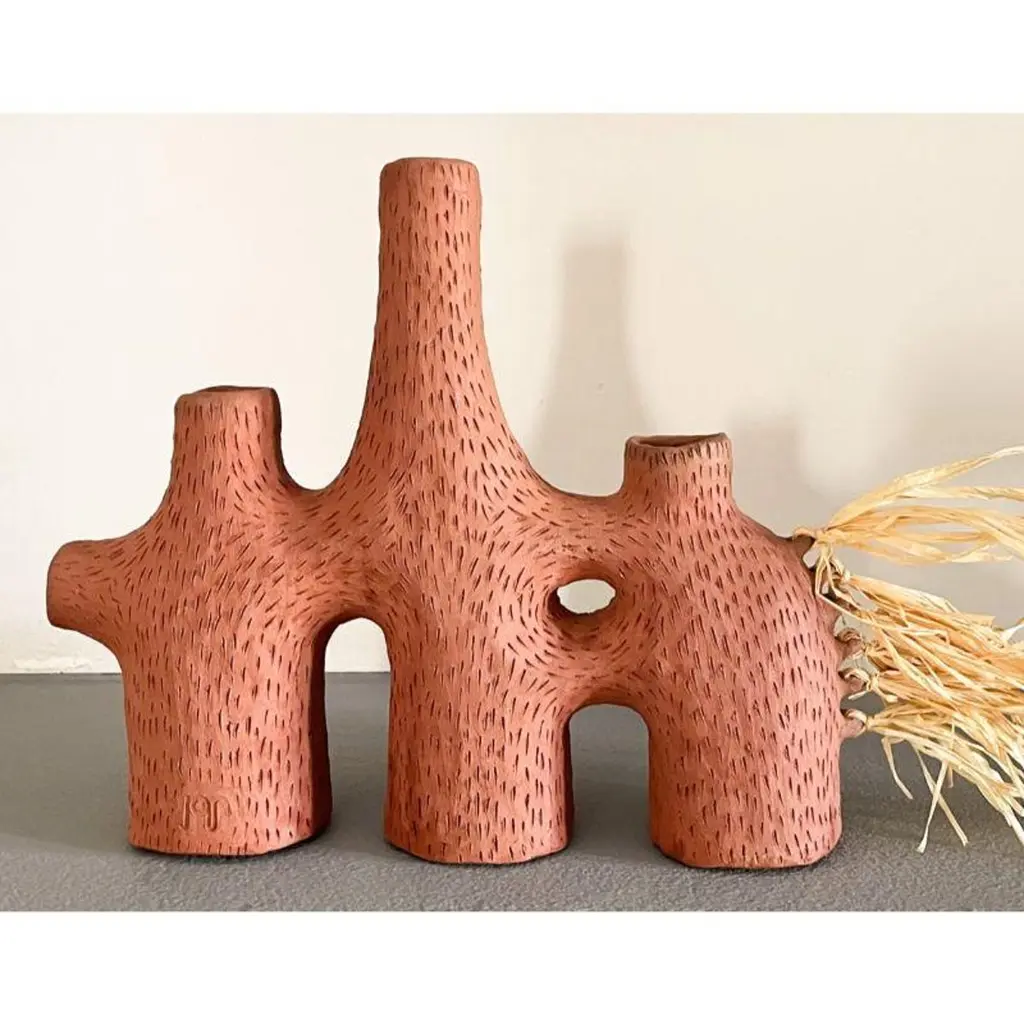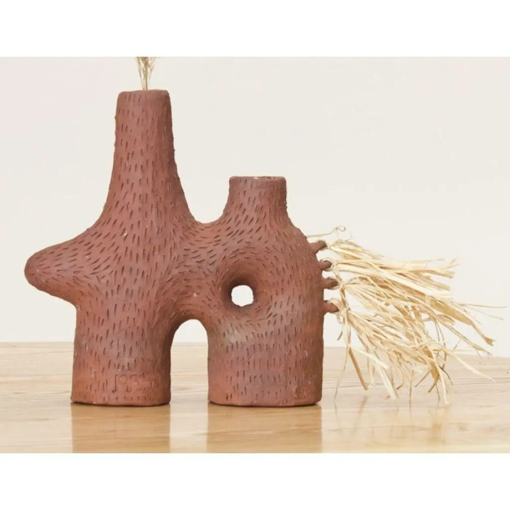 Set of 2, Selamawi candelabra & vessel by TheUrbanativeOne of a KindDimensions: W 40 x D 40 x H 40 cm Material: Terracotta: Raw & Raffia TheUrbanative is a contemporary South African furniture and product design company based in Johannesburg.The furniture and products are differentiated by the juxtaposition of abstracted African heritage inspirations with the functionality & aesthetic qualities of modern furniture silhouettes, materials & technologies; whilst guided by the philosophies of storytelling, craft, collaboration and design evolution.All of the products are designed and manufactured in South Africa. Started in 2017 by Mpho Vackier (a process engineer turned interior &furniture designer), TheUrbanative's work is a constant exploration of the role of culture and heritage representations. Along with that concepts of visibility & representation of African cultures in modern societies with the ultimate intention of telling African stories through modern furniture and product design.
