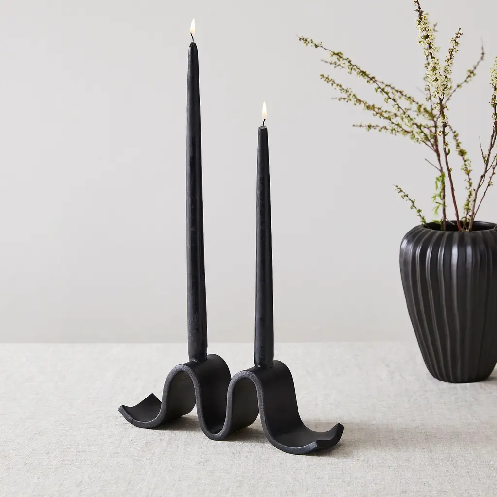 It elegantly holds two tapered candles. Looks effortlessly stylish on your mantel or table. Doubles as sculptural, modern art.