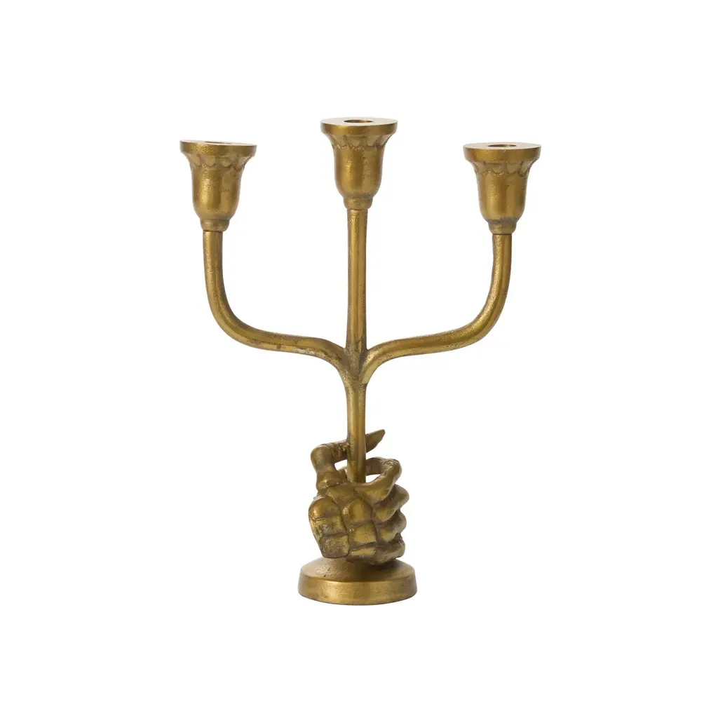 Illuminate any space with this perfectly spooky candelabra. Featuring a detailed, skeletal hand at the base of the design, it's the perfect accent for any table, counter, desk, or more. Crafted with durability in mind, it will help add the finishing touch to any Halloween display. Whether throwing the perfect costume party or trying to create the perfect foreboding vibe, this candelabra is the best complement to spooktastic decor.