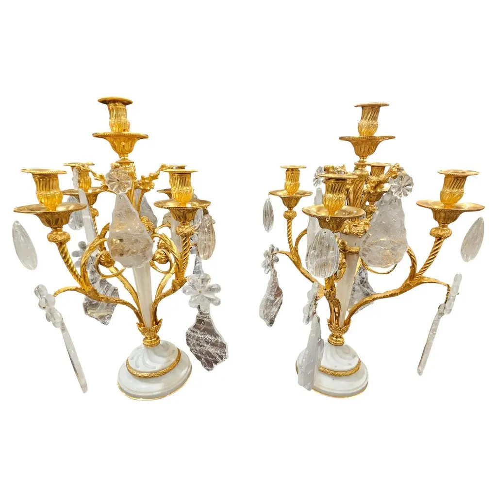 Two Five-Light Candelabra, Wooden, Gilded And Lacquered Venetian