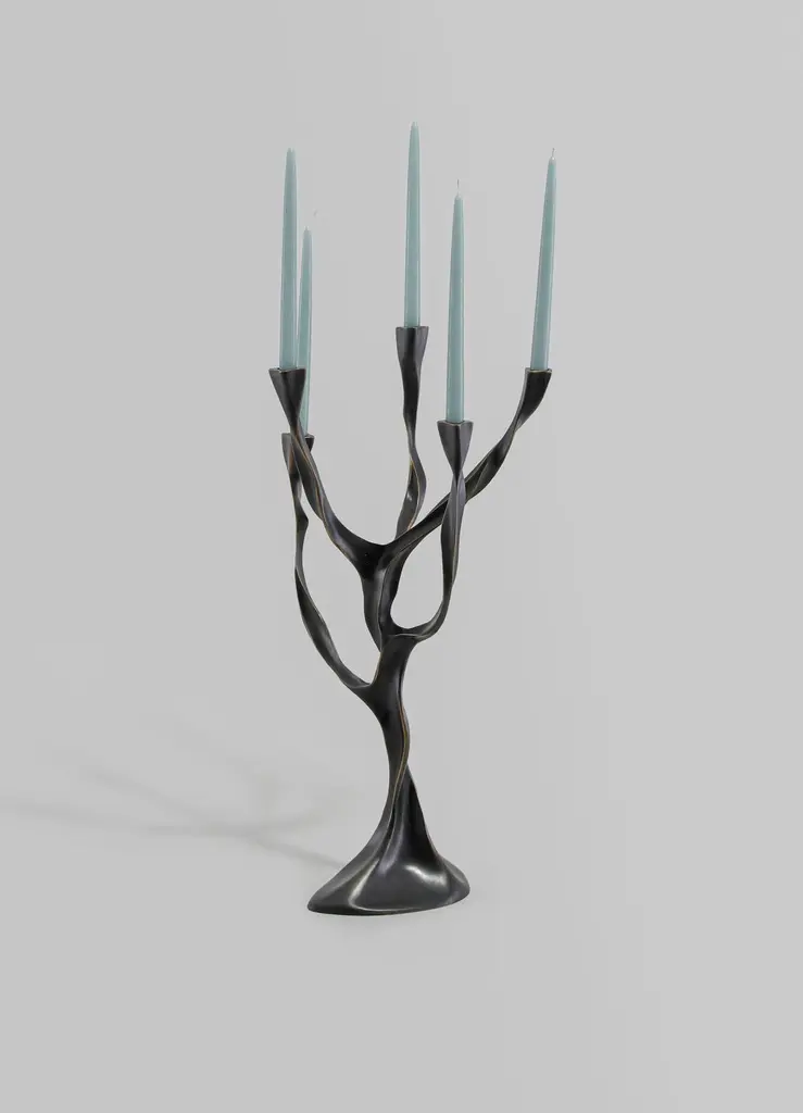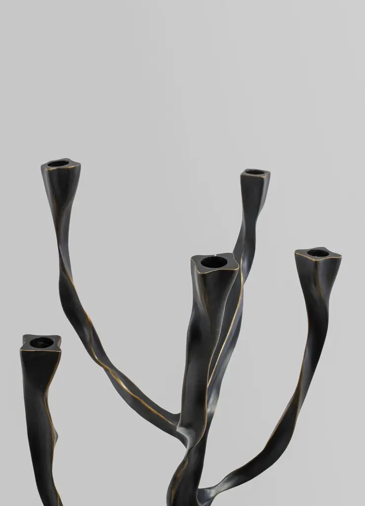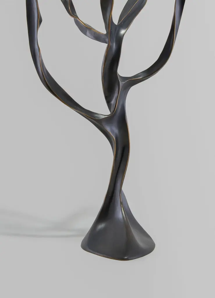 Under The Banyan Bronze Candelabra Large in Brass, Viya by Vikram GoyalEchoing ancient whispers of worship, each object captures the essence of the Banyan tree, believed to hold the divine power to fulfil wishes. Crafted with reverence, these brass objects reflect the intricate dance of aerial roots, encapsulating the symbolism of longevity, mortality, and enlightenment.Candle stand in brass. Handmade in India.Product DetailsMaterial: BrassSize: 15"L x 12"W x 27"H 38.1 L x 30.5 W x 68.6 H cmWeight: 7.6 kg 16.72 lbsNumber of Pieces: 1 Candle StandSKU: VCS1402This product has been handcrafted by local artisans. As such, slight variations are a testament to the unique character of a piece made by hand.