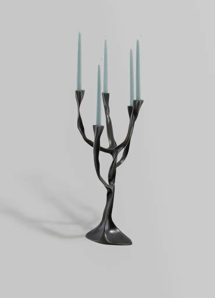 Under The Banyan Bronze Candelabra Large In Brass, Viya By Vikram Goyal